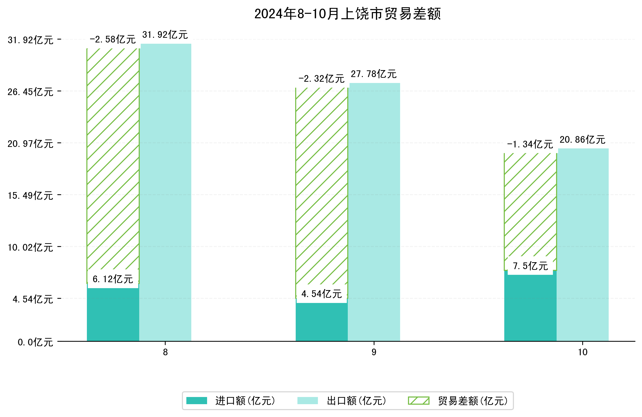 2024年10月上饶市进出口总额及进出口差额统计分析