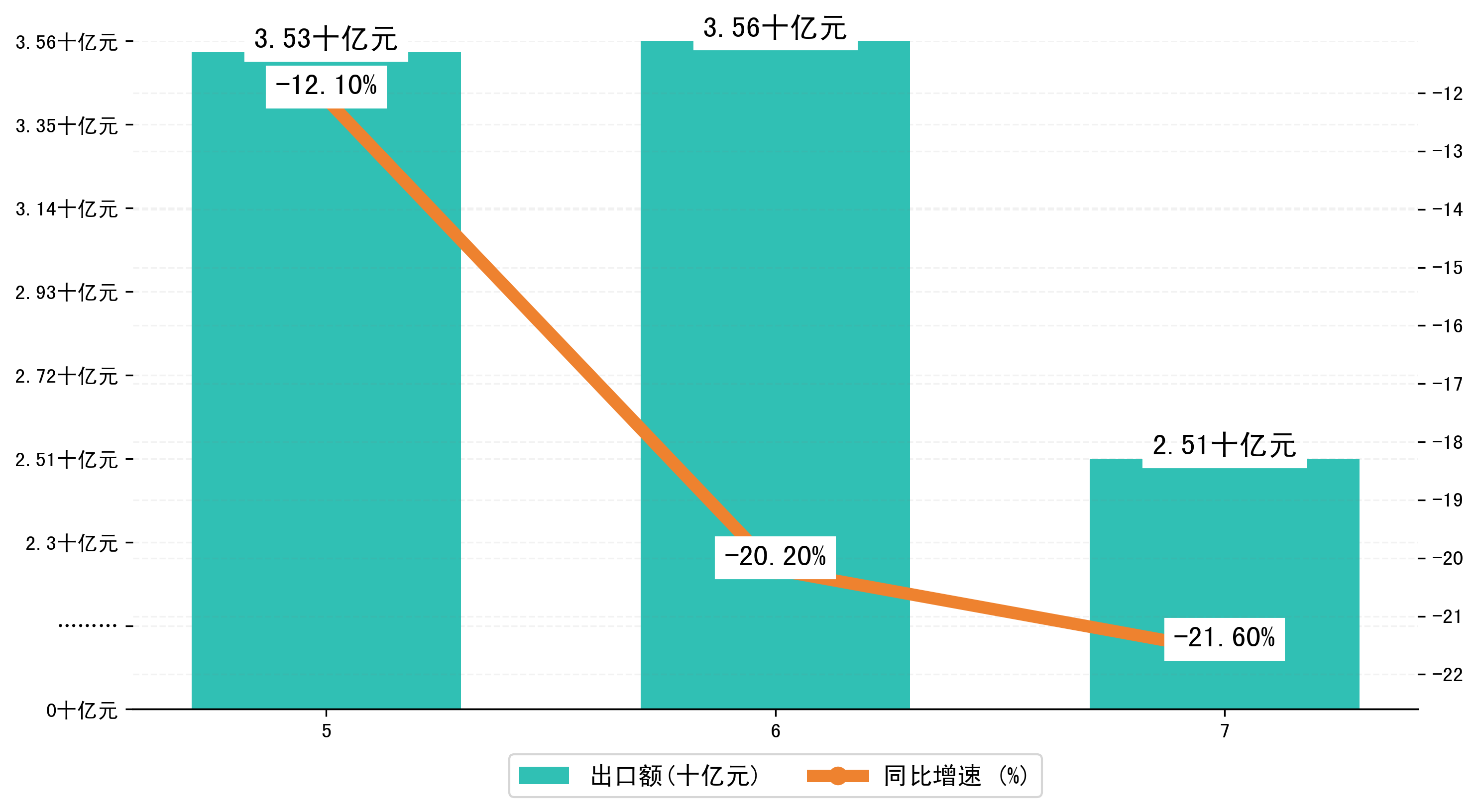 以人民币计,2024年7月上饶市出口额为25,0802.4668万元,相比上月减少了10,5160.4105万元;相比上年同期减少了12,0307.5043万元,同比减少了-21.60%。