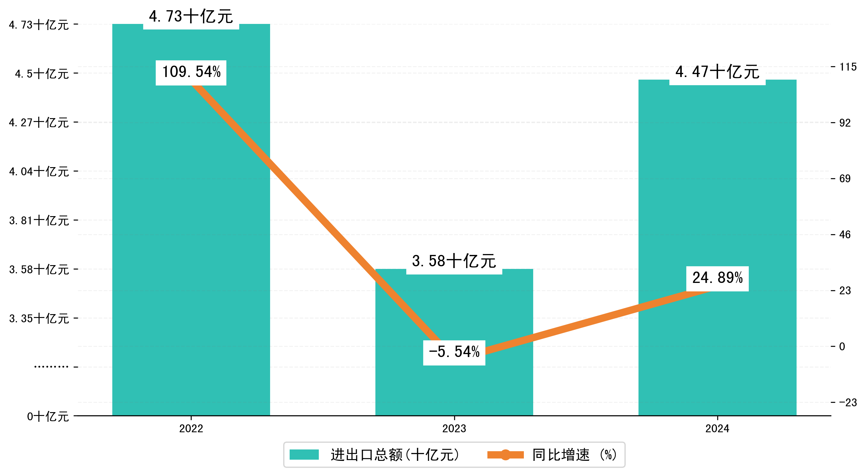 以人民币计,2024年1-1月上饶市进出口总额为44,7025.615万元,相比上年同期增加了8,9095.8089万元,同比增加了32.90%。