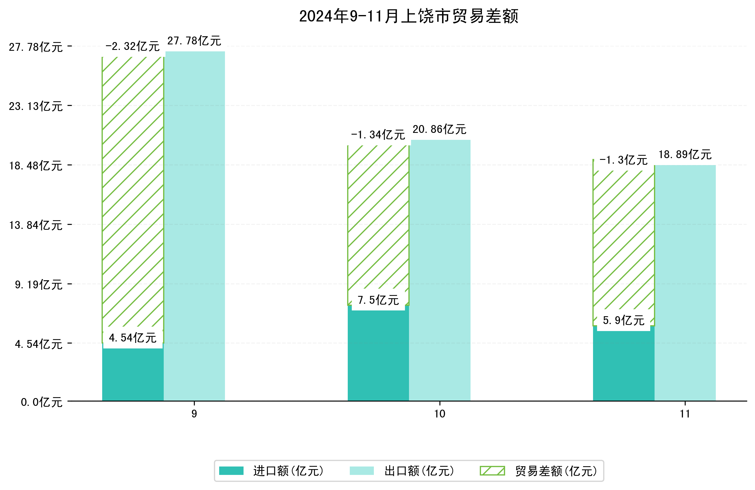 2024年11月上饶市进出口总额及进出口差额统计分析