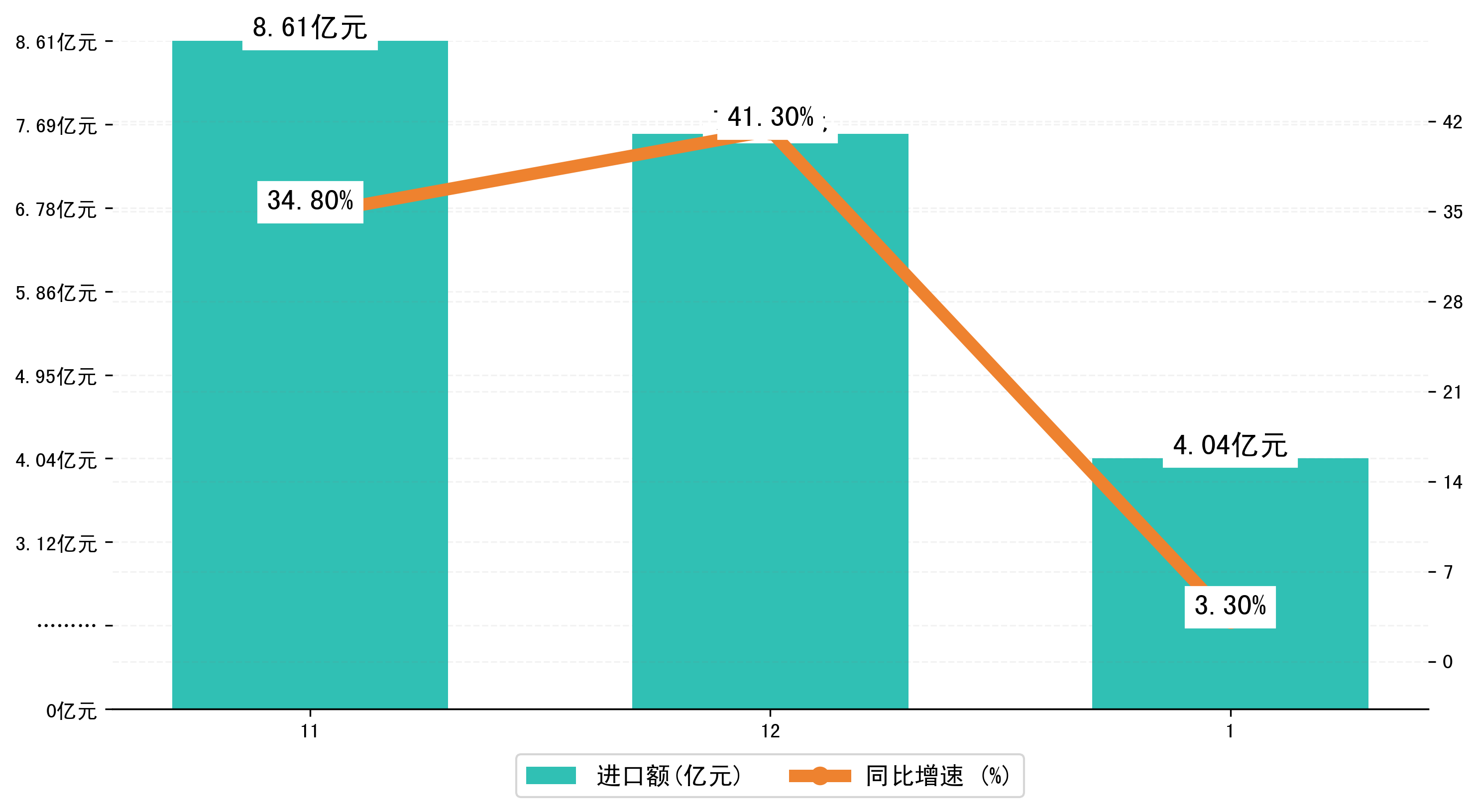 以人民币计,2023年1-1月上饶市进口额为4,0350.2172万元,相比上年同期增加了1283.7621万元,同比增加了3.30%。