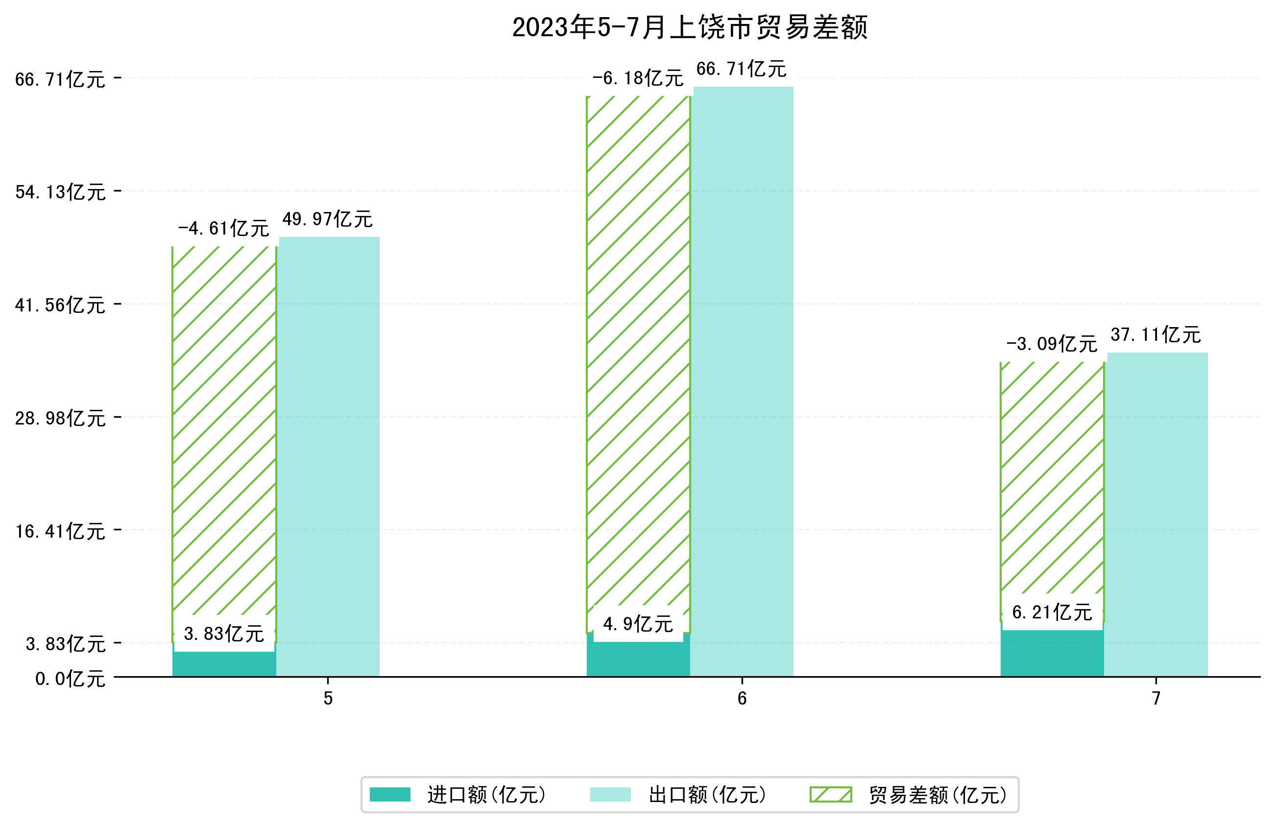 以美元计,2023年1-7月上饶市贸易差额为45,5408,7671万美元(贸易顺差),相比上年同期增加了6,1656,5800万美元,同比增加15.66%。