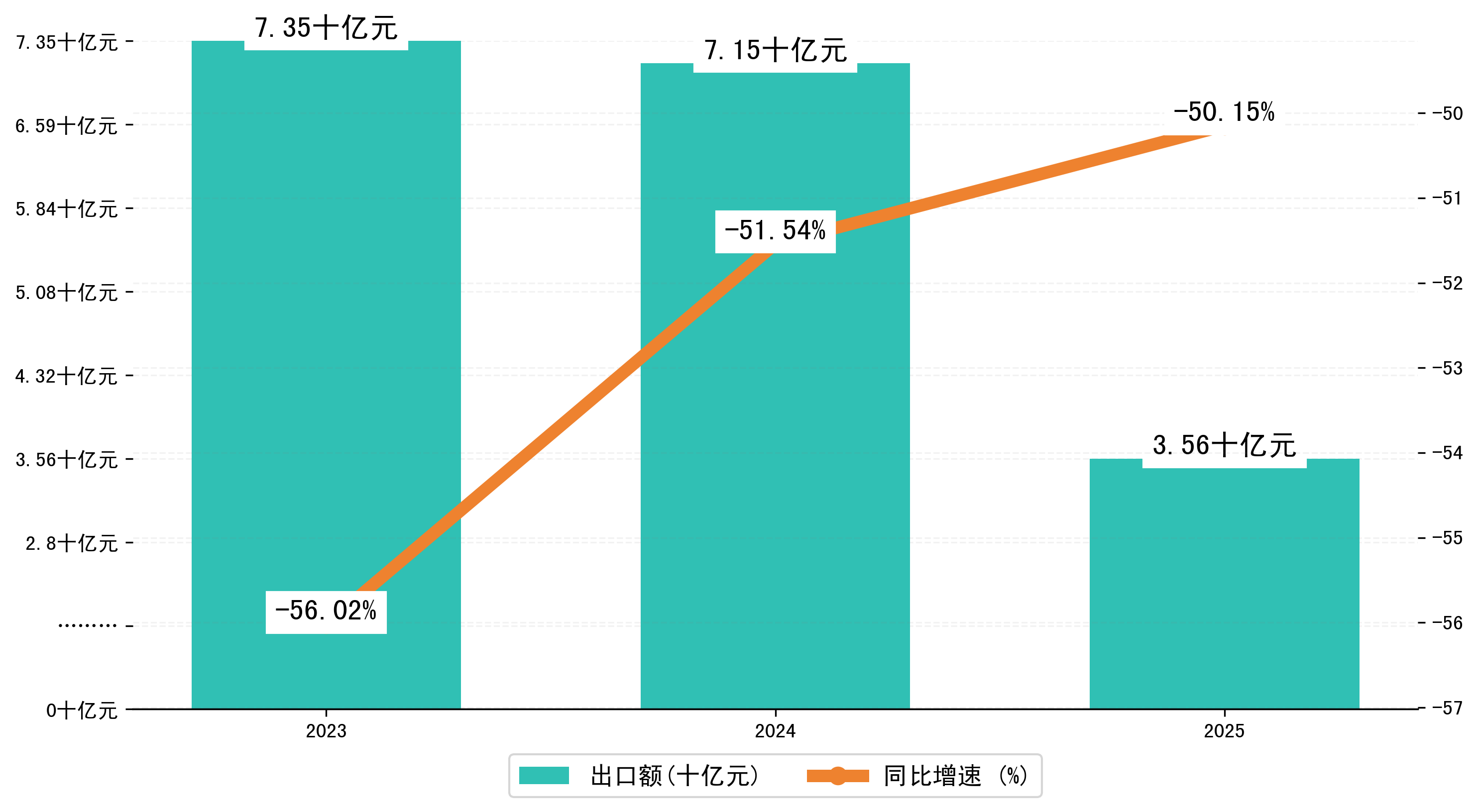 以美元计,2025年1-2月上饶市出口额为4,9563.2023万美元,相比上年同期减少了5,0858.4177万美元,同比减少-50.60%。