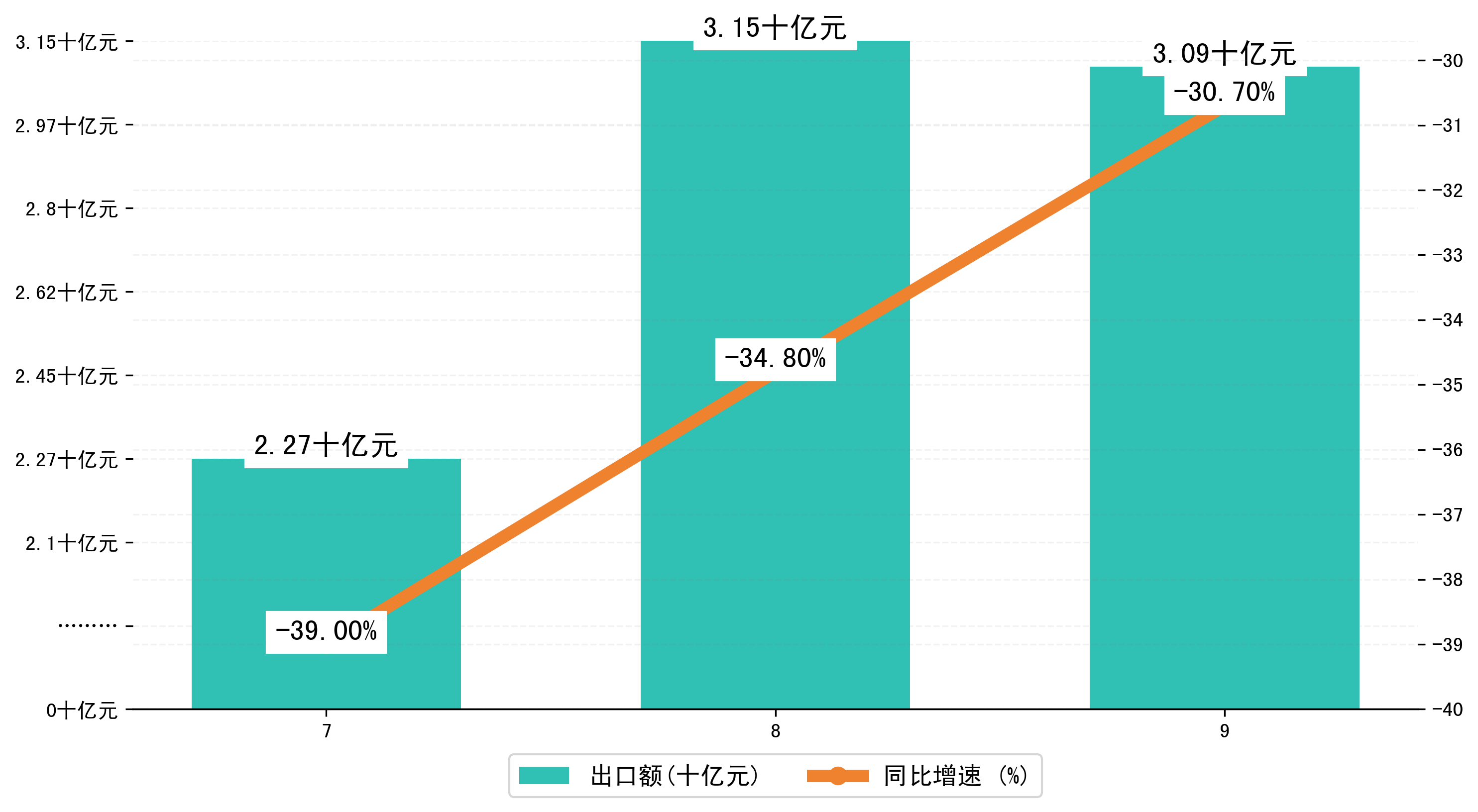 以人民币计,2025年1-9月上饶市出口额为216,7866.8656万元,相比上年同期减少了95,9461.1737万元,同比减少了-30.70%。