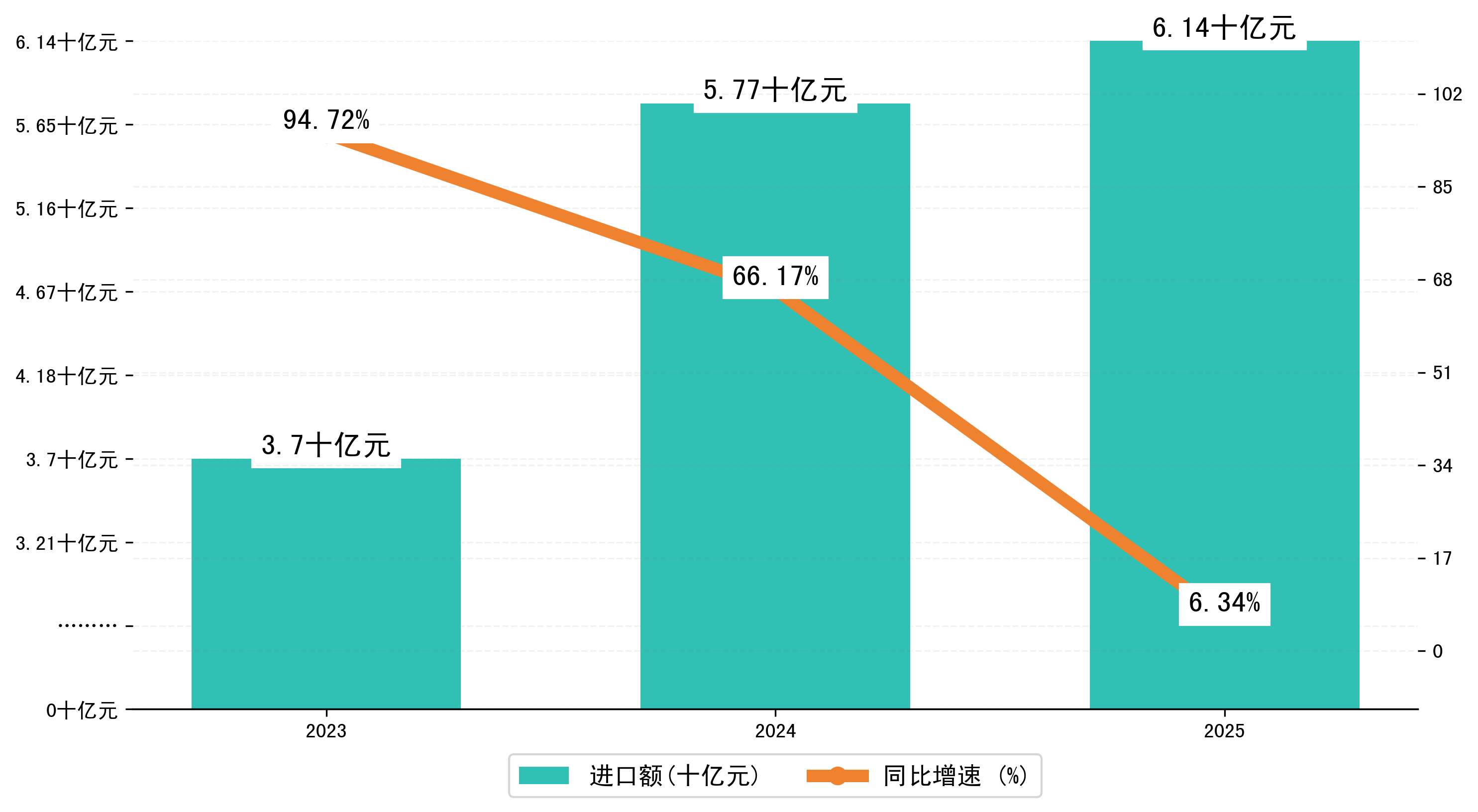 以人民币计,2025年1-9月上饶市进口额为61,4026.2737万元,相比上年同期增加了3,6605.7813万元,同比增加了4.10%。
