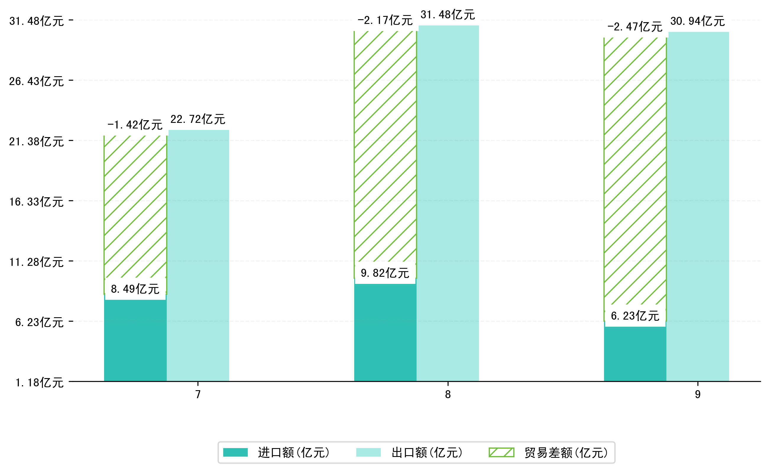 以人民币计,2025年9月上饶市贸易差额为24,7080,2461万元(贸易顺差),相比上月增加了3,0501,7782万元,即4456,8874万美元;相比上年同期增加了1,4710,2922万元,同比增加6.33%。