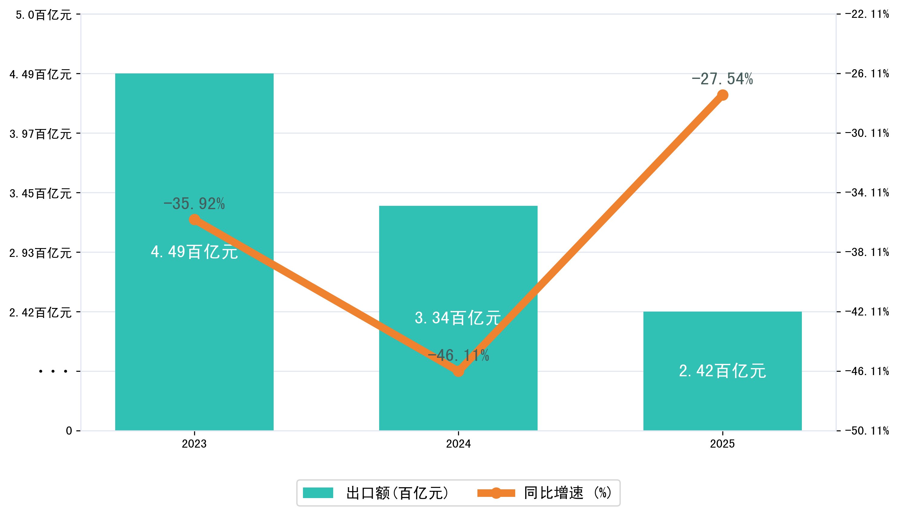 以人民币计,2025年1-10月上饶市出口额为241,7171.7776万元,相比上年同期减少了91,8714.9812万元,同比减少了-27.50%。
