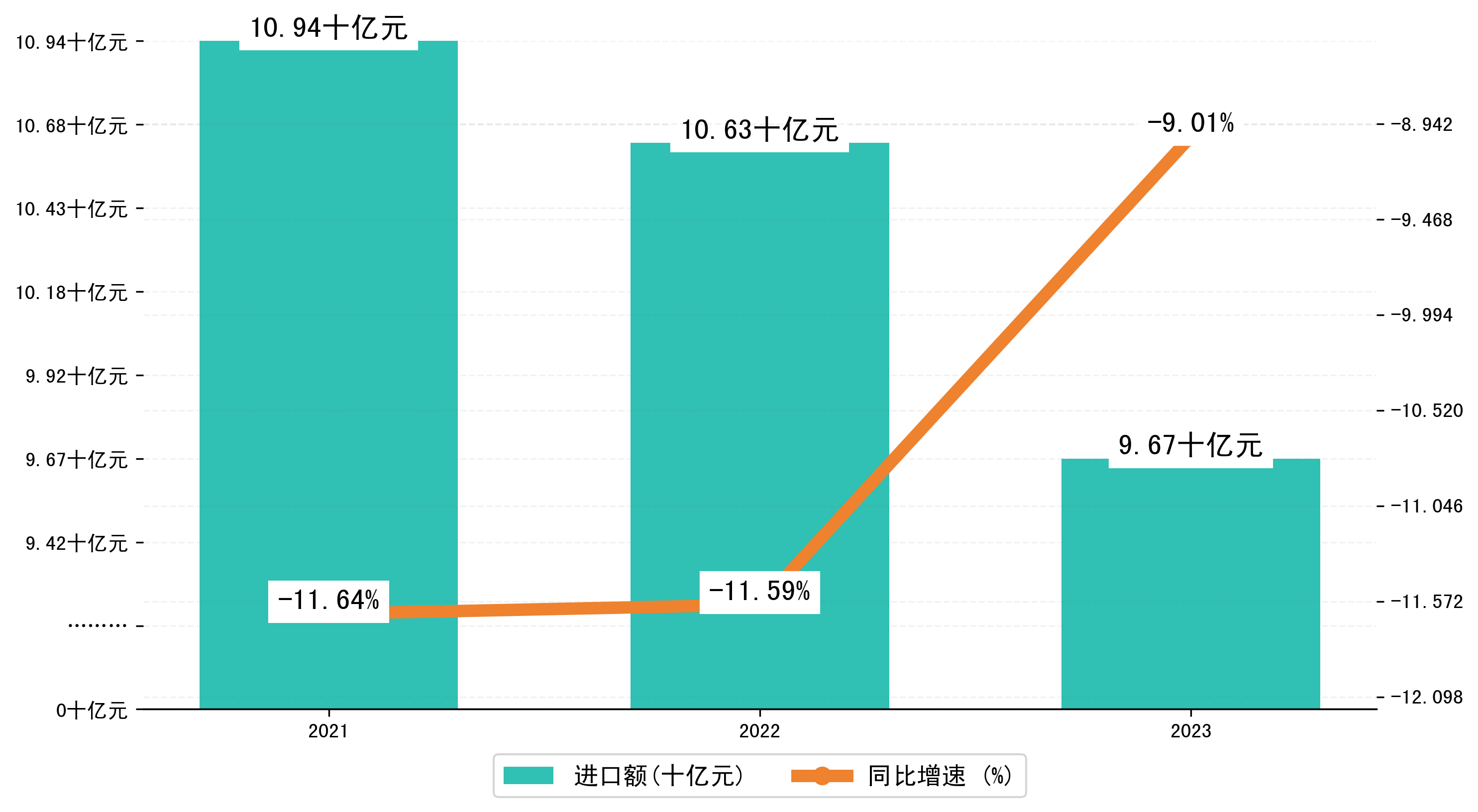 以人民币计,2023年1-9月汕头市进口额为96,6977.693万元,相比上年同期减少了9,5745.8987万元,同比减少了-8.90%。