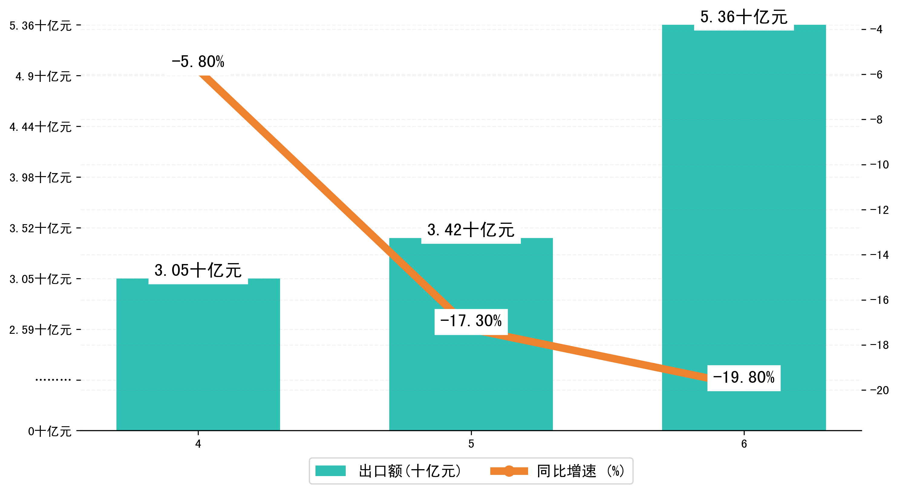 以人民币计,2024年6月汕头市出口额为53,5739.3497万元,相比上月增加了19,3540.2597万元;相比上年同期减少了19,4575.355万元,同比减少了-19.80%。