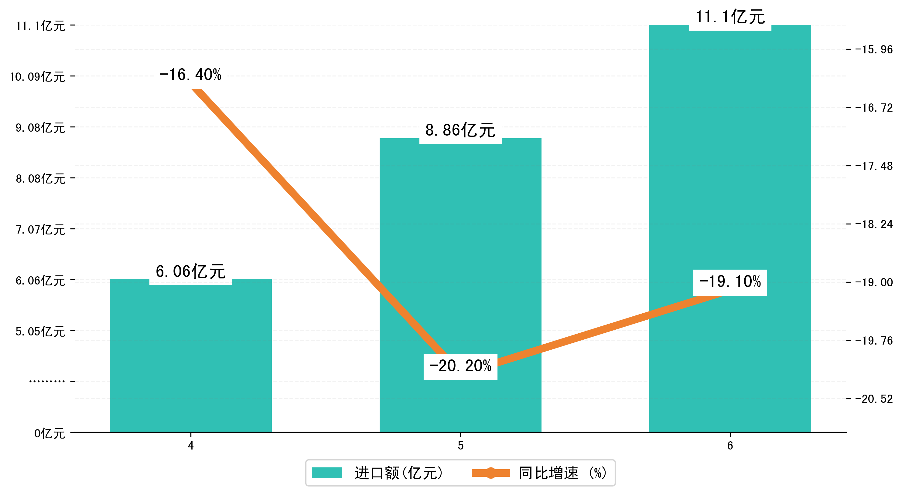 以人民币计,2024年1-6月汕头市进口额为52,3604.4426万元,相比上年同期减少了13,0150.9297万元,同比减少了-19.10%。