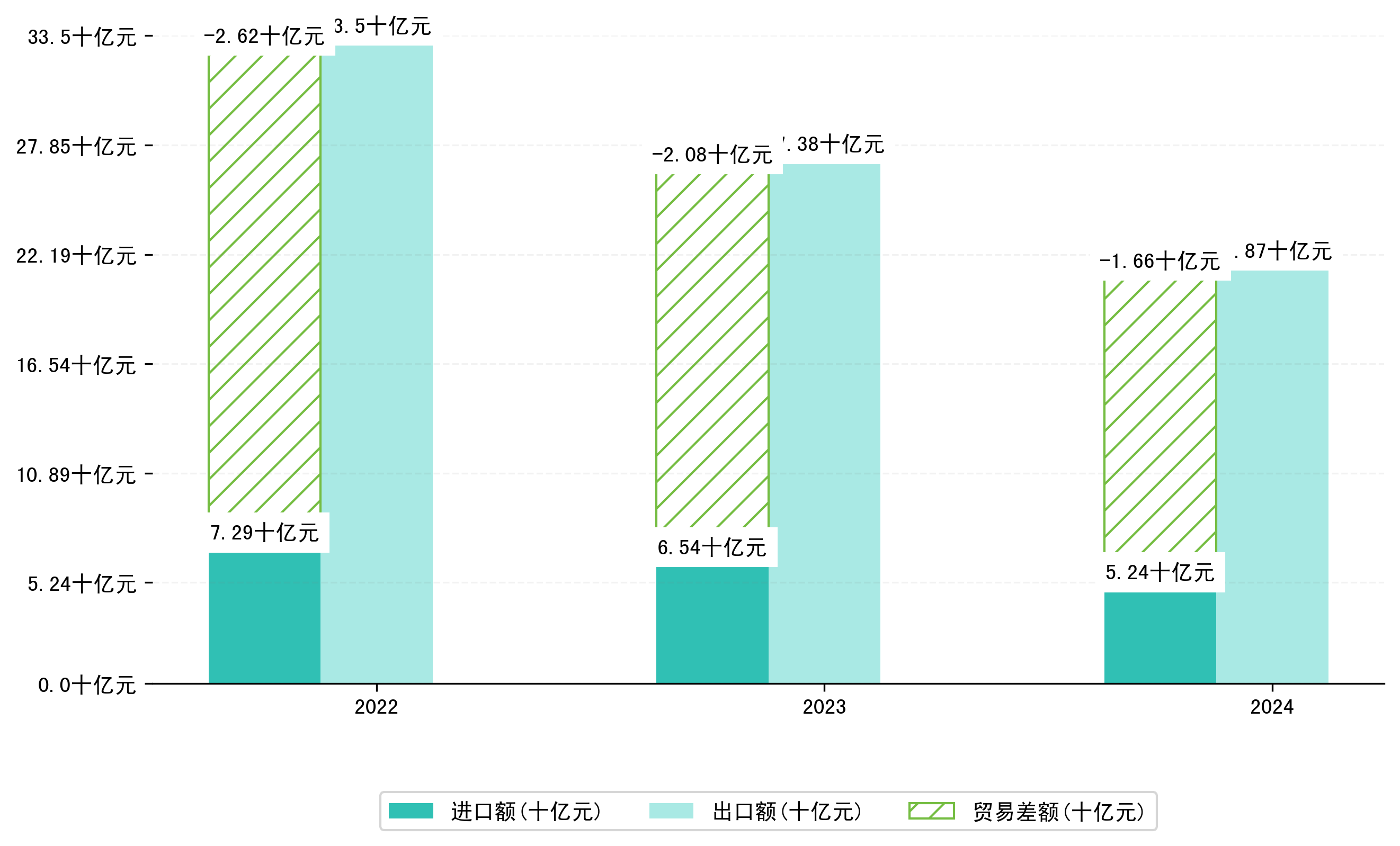 以人民币计,2024年1-6月汕头市贸易差额为166,3574,5410万元(贸易顺差),相比上年同期减少了42,0305,8220万元,同比减少-20.17%。