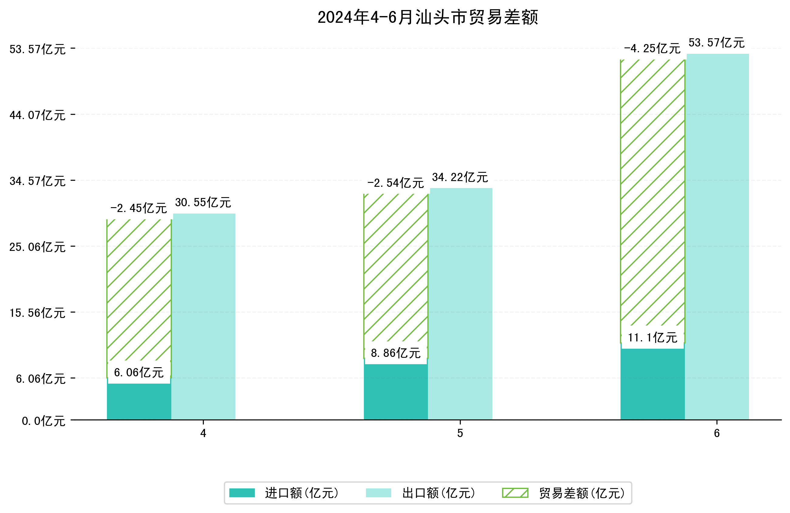 2024年6月汕头市进出口总额及进出口差额统计分析