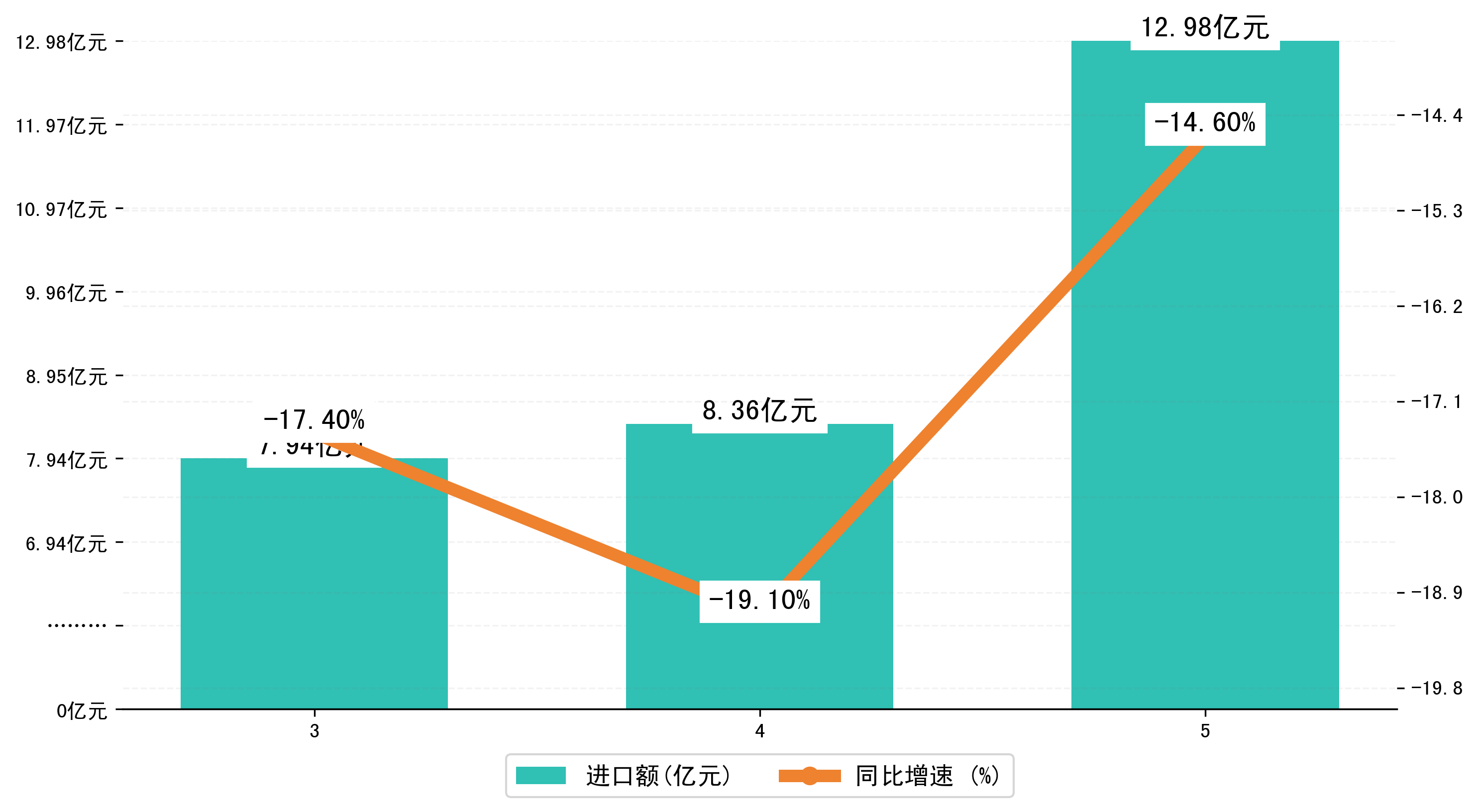 以人民币计,2023年5月汕头市进口额为12,9809.7196万元,相比上月增加了4,6186.6088万元;相比上年同期增加了4046.1572万元,同比减少了-14.60%。