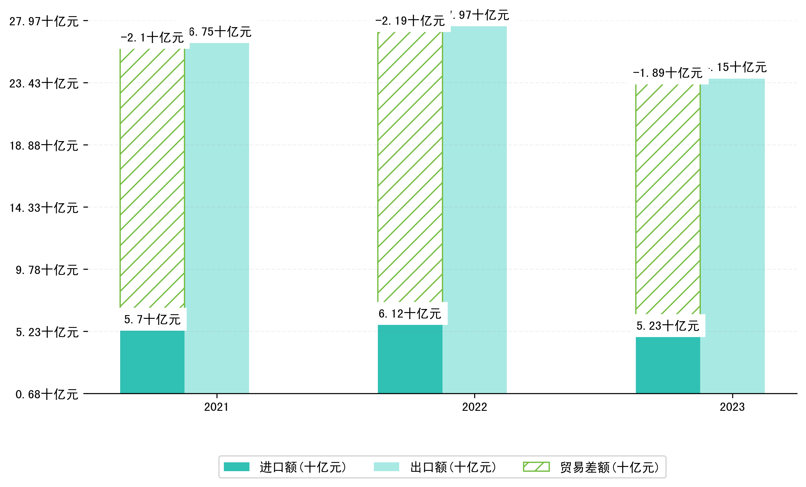 以美元计,2023年1-5月汕头市贸易差额为27,4489,3264万美元(贸易顺差),相比上年同期减少了6,8307,9793万美元,同比减少-19.93%。