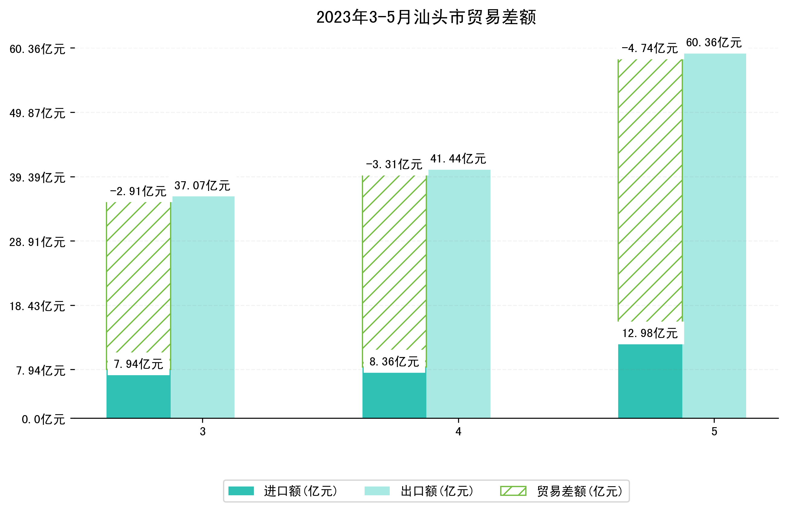 2023年5月汕头市进出口总额及进出口差额统计分析