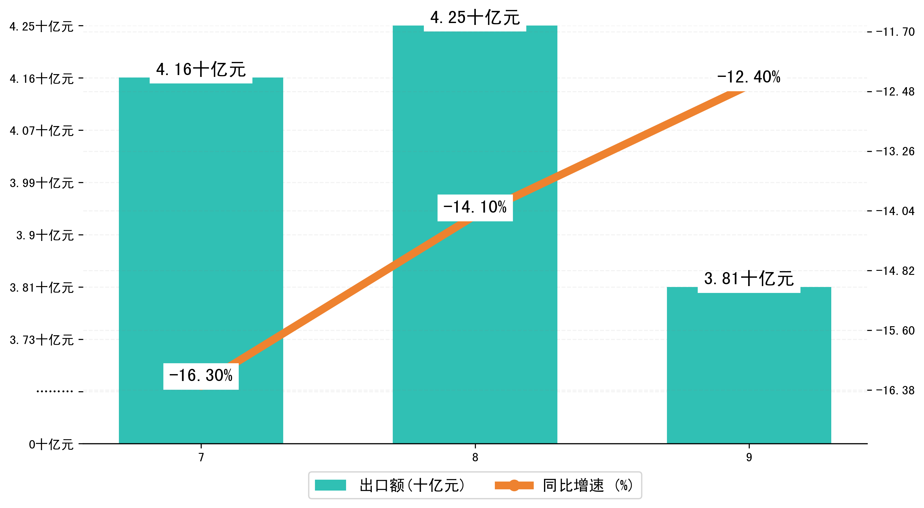 以美元计,2024年1-9月汕头市出口额为47,9413.2121万美元,相比上年同期减少了7,9867.6486万美元,同比减少-14.10%。