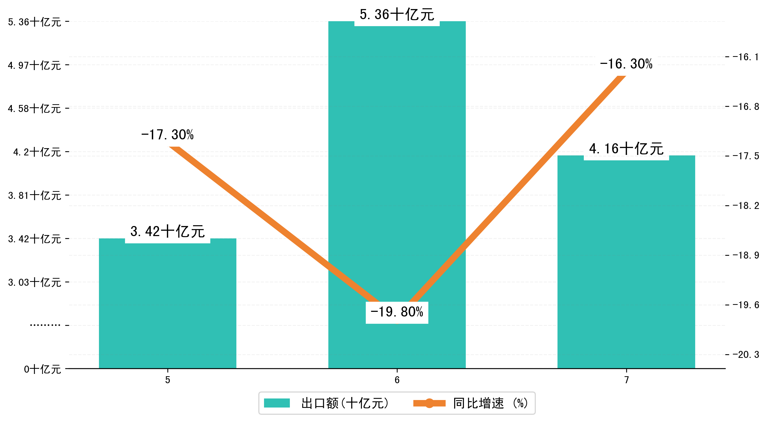 以人民币计,2024年7月汕头市出口额为41,6089.0741万元,相比上月减少了11,9650.2756万元;相比上年同期增加了3,5140.0504万元,同比减少了-16.30%。