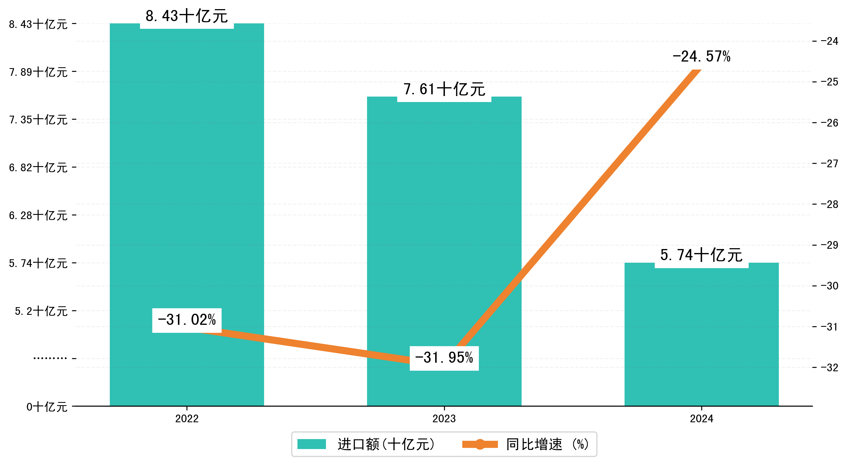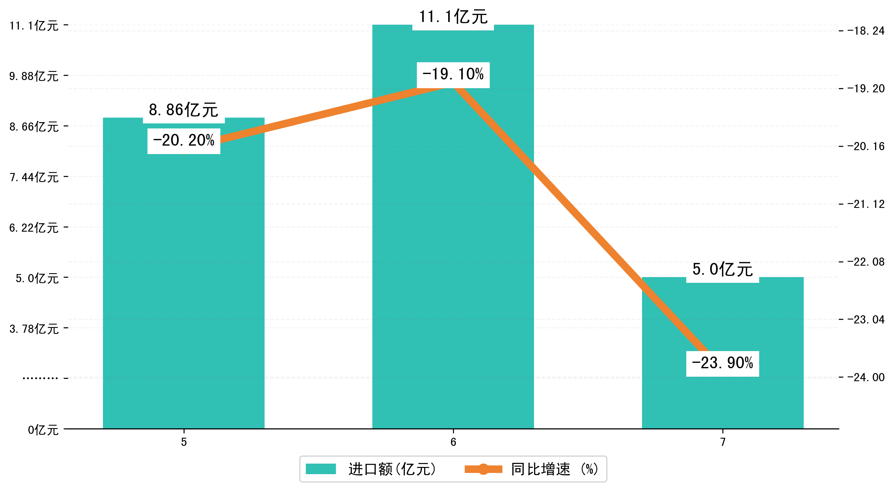 以美元计,2024年1-7月汕头市进口额为8,0753.7864万美元,相比上年同期减少了2,9147.3837万美元,同比减少-25.90%。