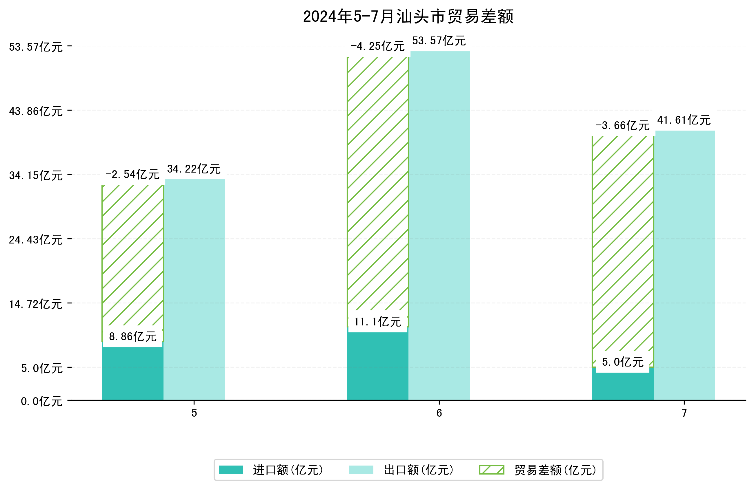 2024年7月汕头市进出口总额及进出口差额统计分析