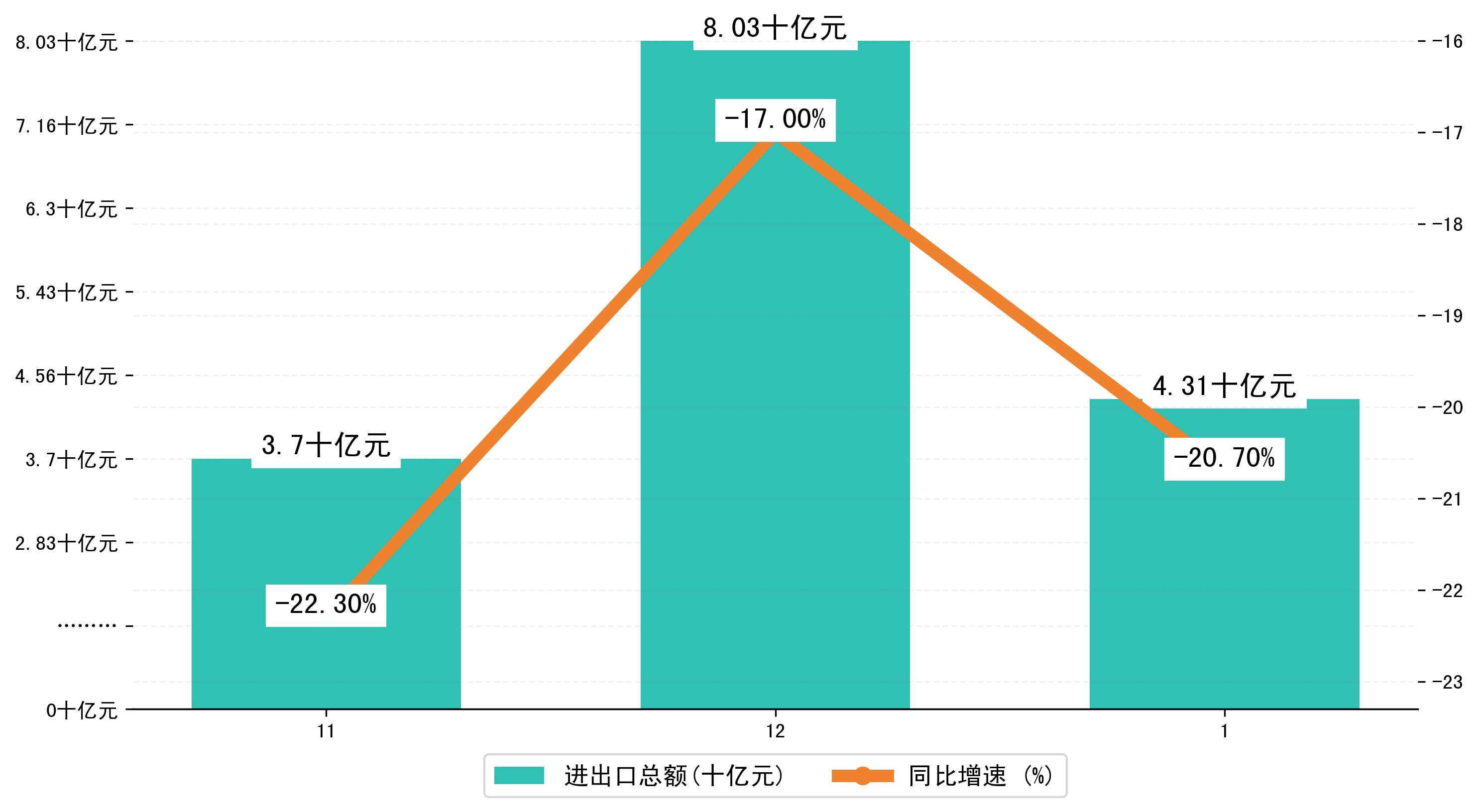 (图一:2024年11-1月汕头市进出口总额)