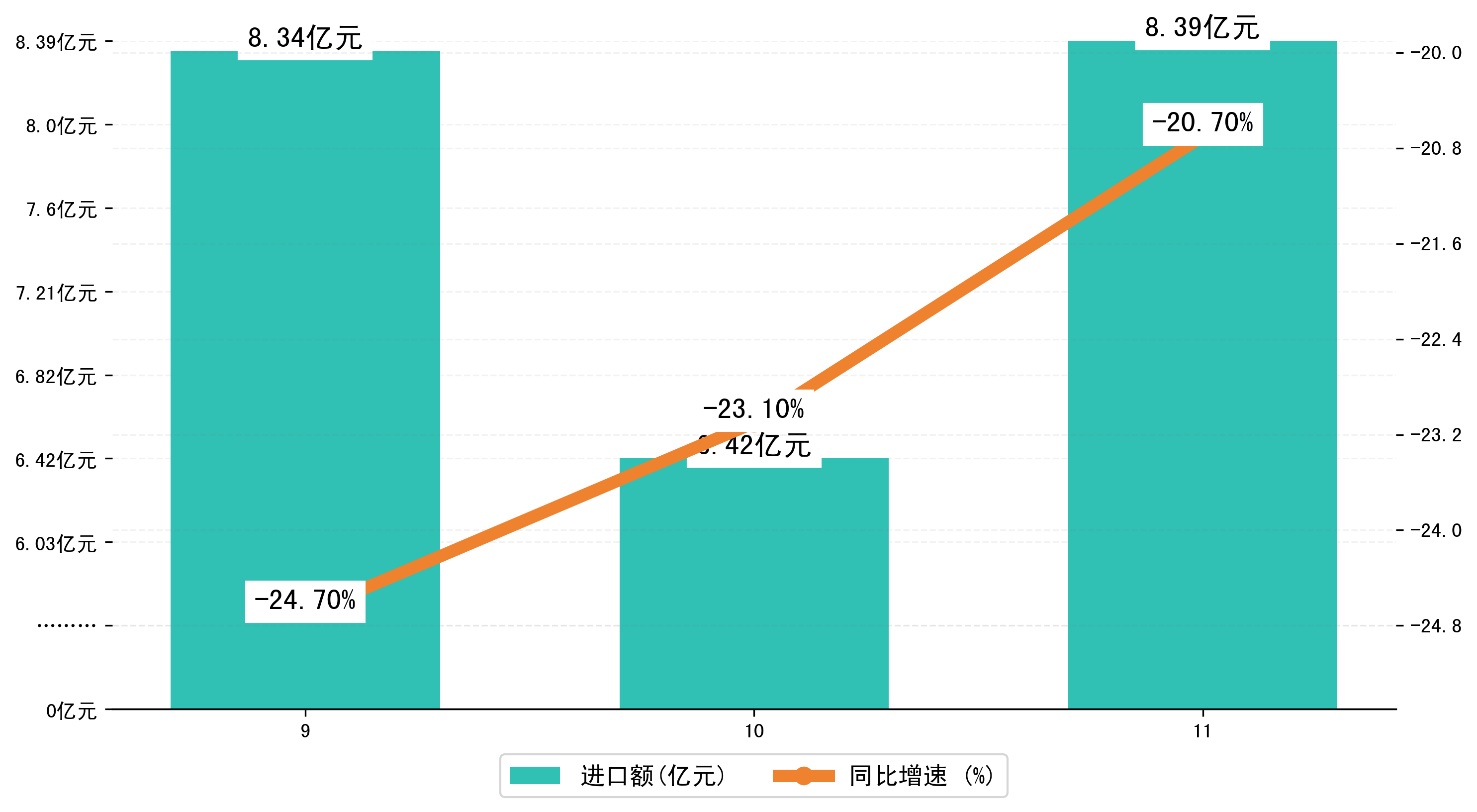 (图三:2024年9-11月汕头市进口额)