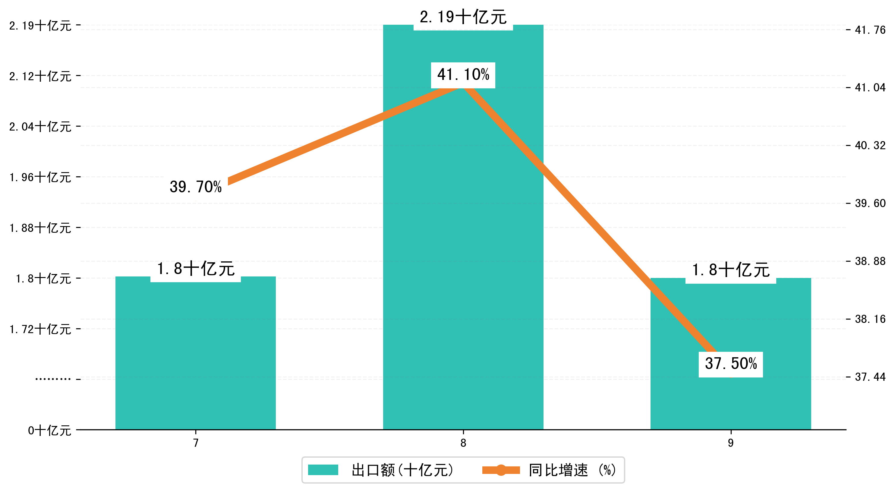 以人民币计,2024年9月廊坊市出口额为18,0184.1998万元,相比上月减少了3,9251.1628万元;相比上年同期增加了1,4946.0535万元,同比增加了37.50%。