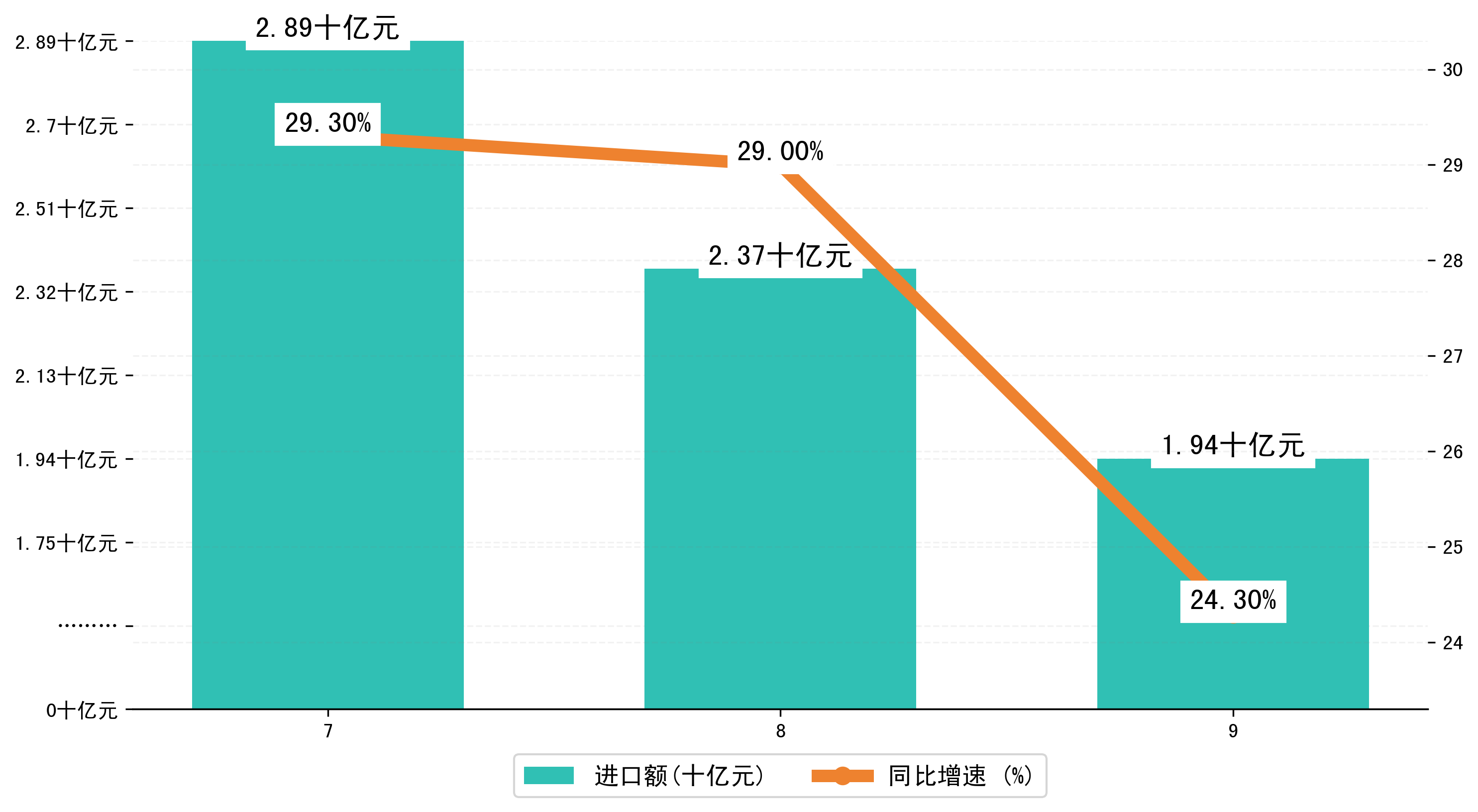 以人民币计,2024年1-9月廊坊市进口额为220,9329.021万元,相比上年同期增加了42,3133.8188万元,同比增加了24.30%。