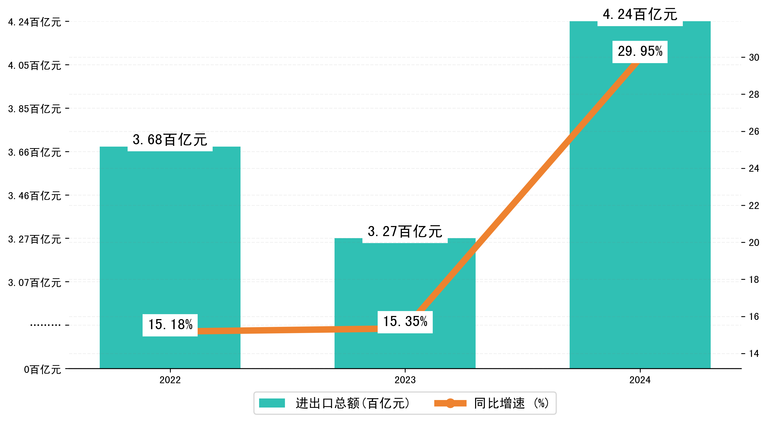 以人民币计,2024年1-9月廊坊市进出口总额为424,4398.4548万元,相比上年同期增加了97,8138.6346万元,同比增加了30.30%。