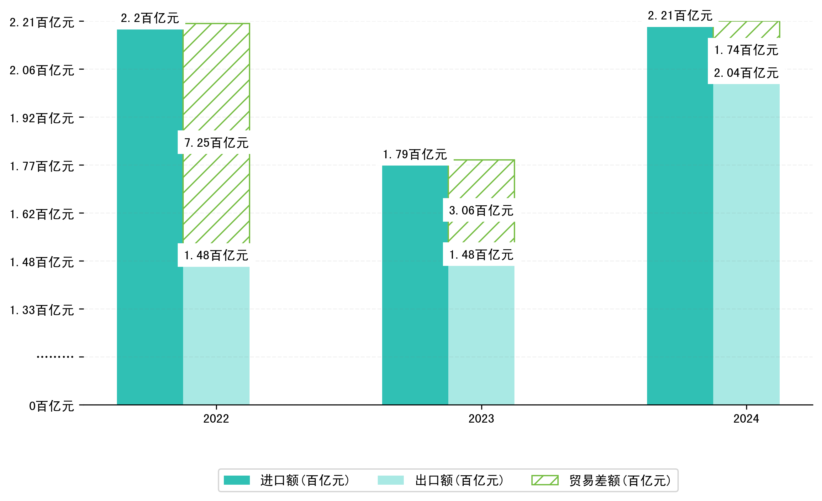 以人民币计,2024年1-9月廊坊市贸易差额为17,4259,5872万元(贸易逆差),相比上年同期增加了13,1870,9970万元,同比增加-43.08%。