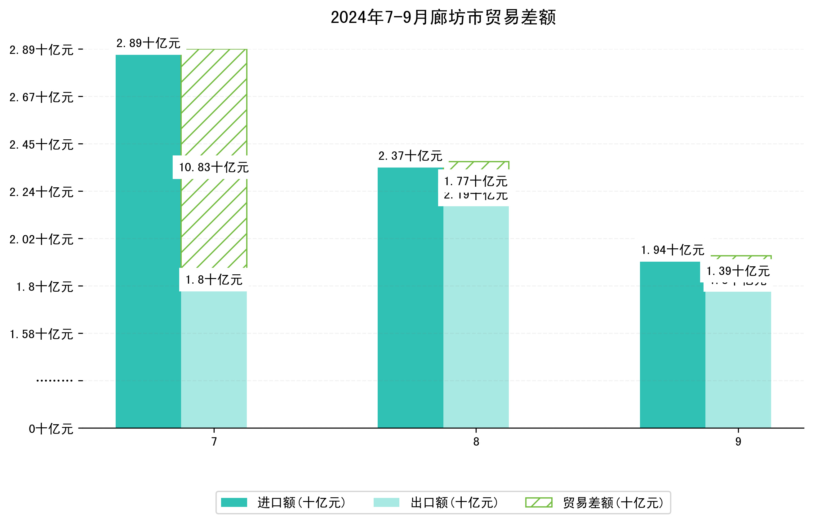 2024年9月廊坊市进出口总额及进出口差额统计分析