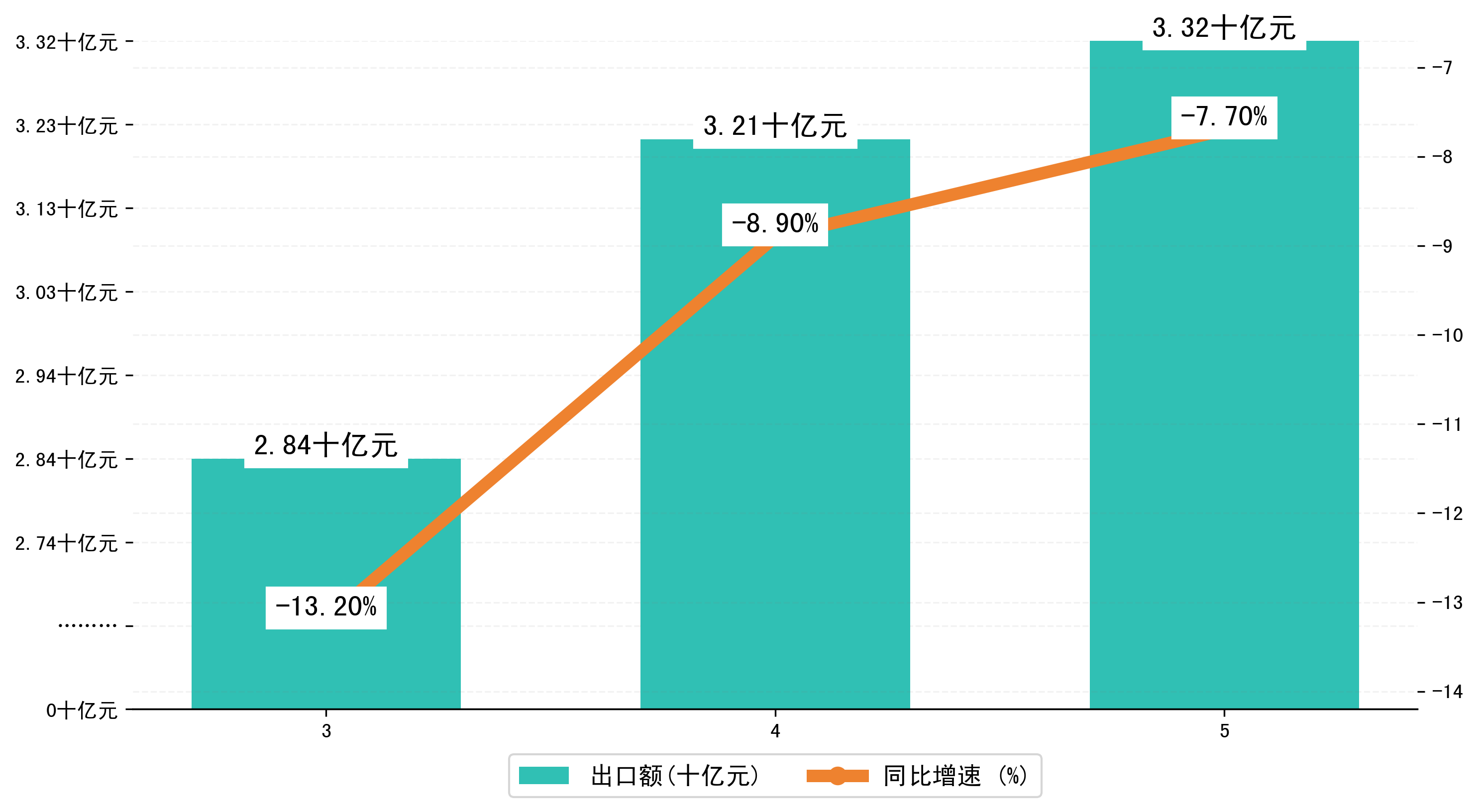 一、2025年5月汕头市单月出口总额及进出口差额统计分析