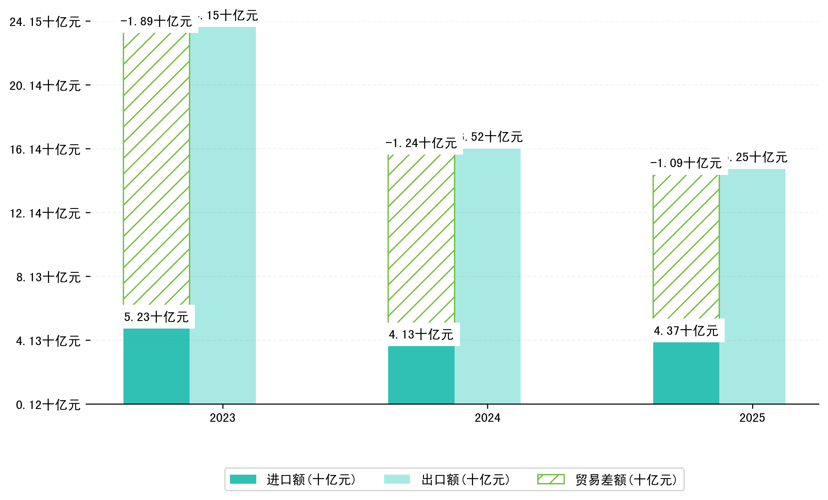 以人民币计,2025年5月汕头市贸易差额为23,8008,0594万元(贸易顺差),相比上月增加了9815,0156万元,即1205,0874万美元;相比上年同期减少了1,5631,8010万元,同比减少-6.16%。