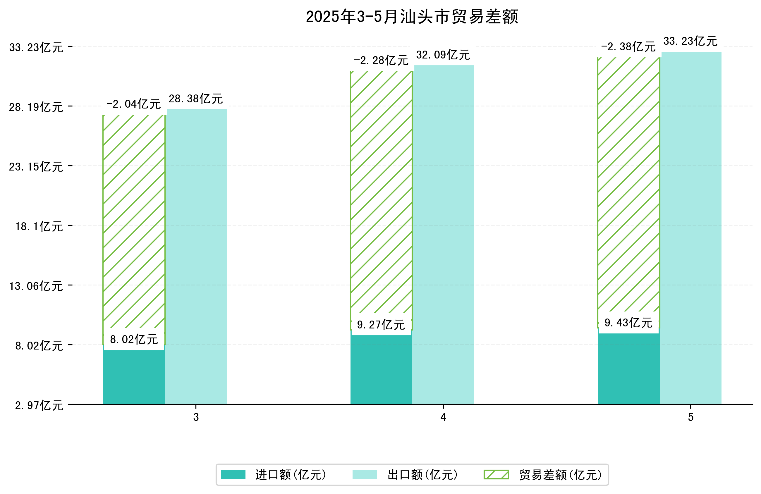 2025年5月汕头市进出口总额及进出口差额统计分析
