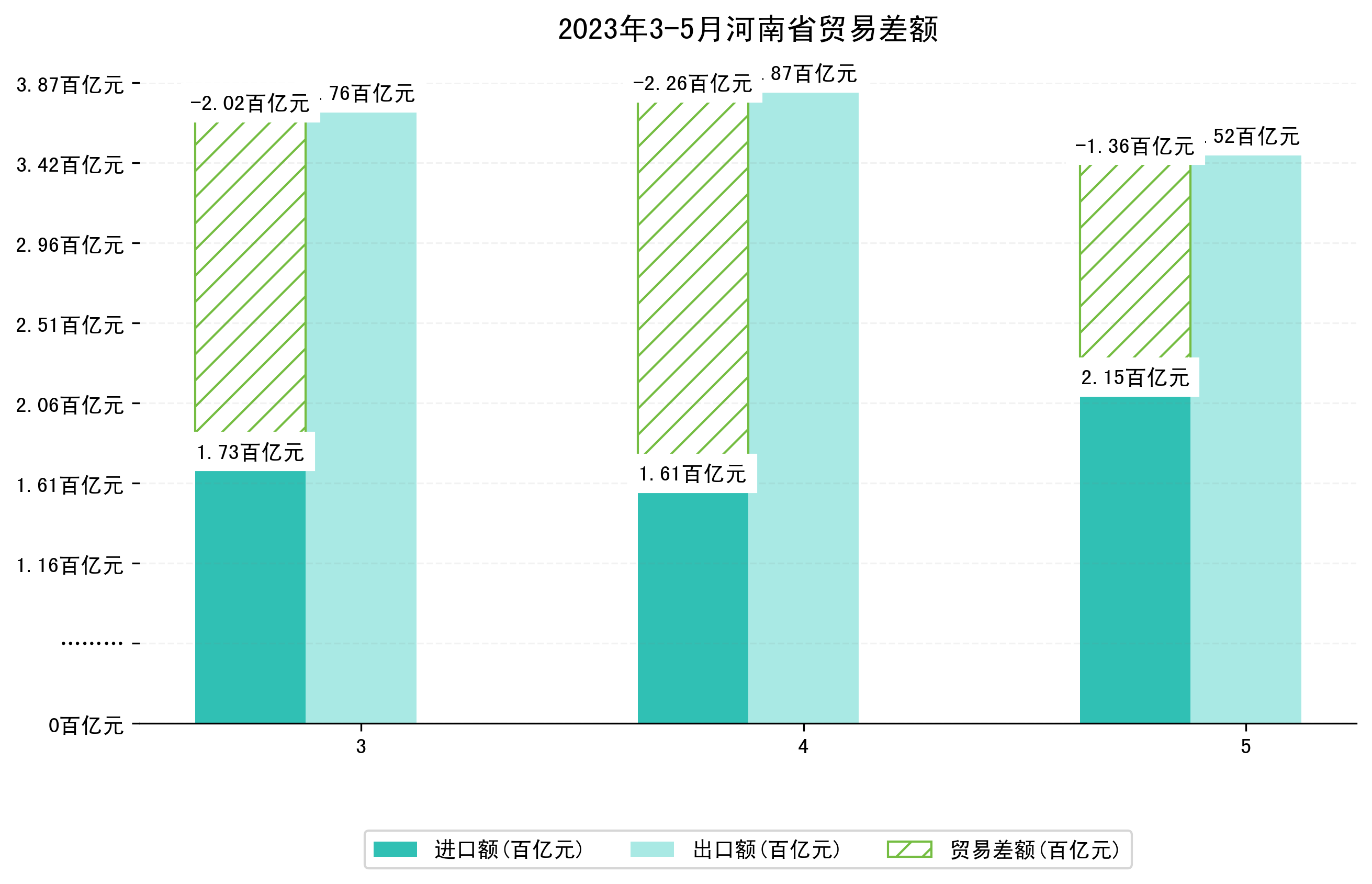 (图四:2023年3-5月河南省贸易差额)