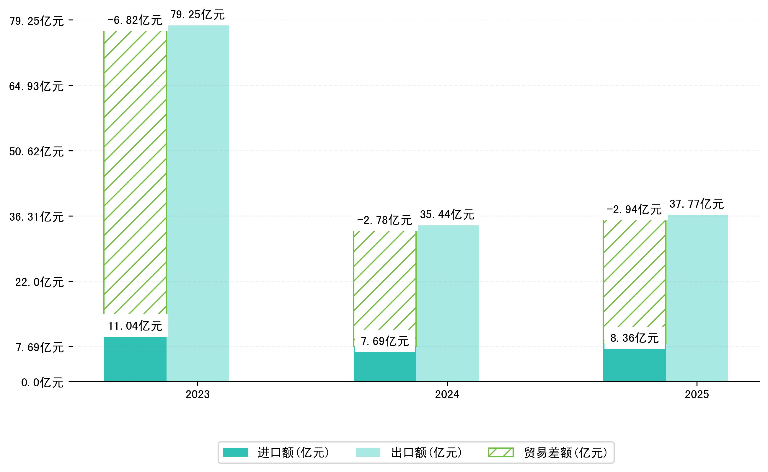 以人民币计,2025年1月汕头市贸易差额为29,4050,4887万元(贸易顺差),相比上月增加了897,5890万元,即66,0108万美元;相比上年同期增加了1,6514,6836万元,同比增加5.95%。