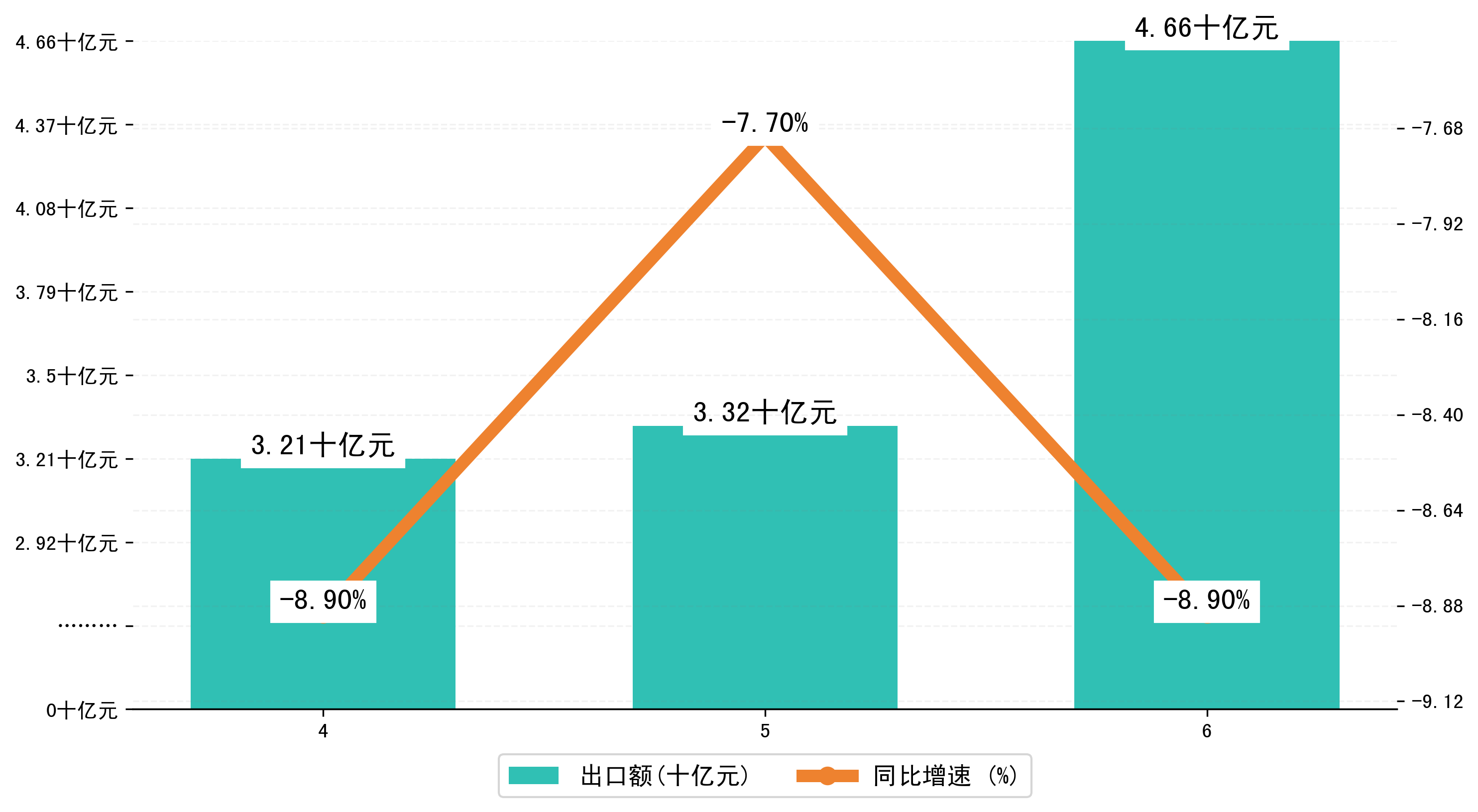 以人民币计,2025年6月汕头市出口额为46,6454.4807万元,相比上月增加了13,4132.5477万元;相比上年同期减少了6,9284.869万元,同比减少了-8.90%。