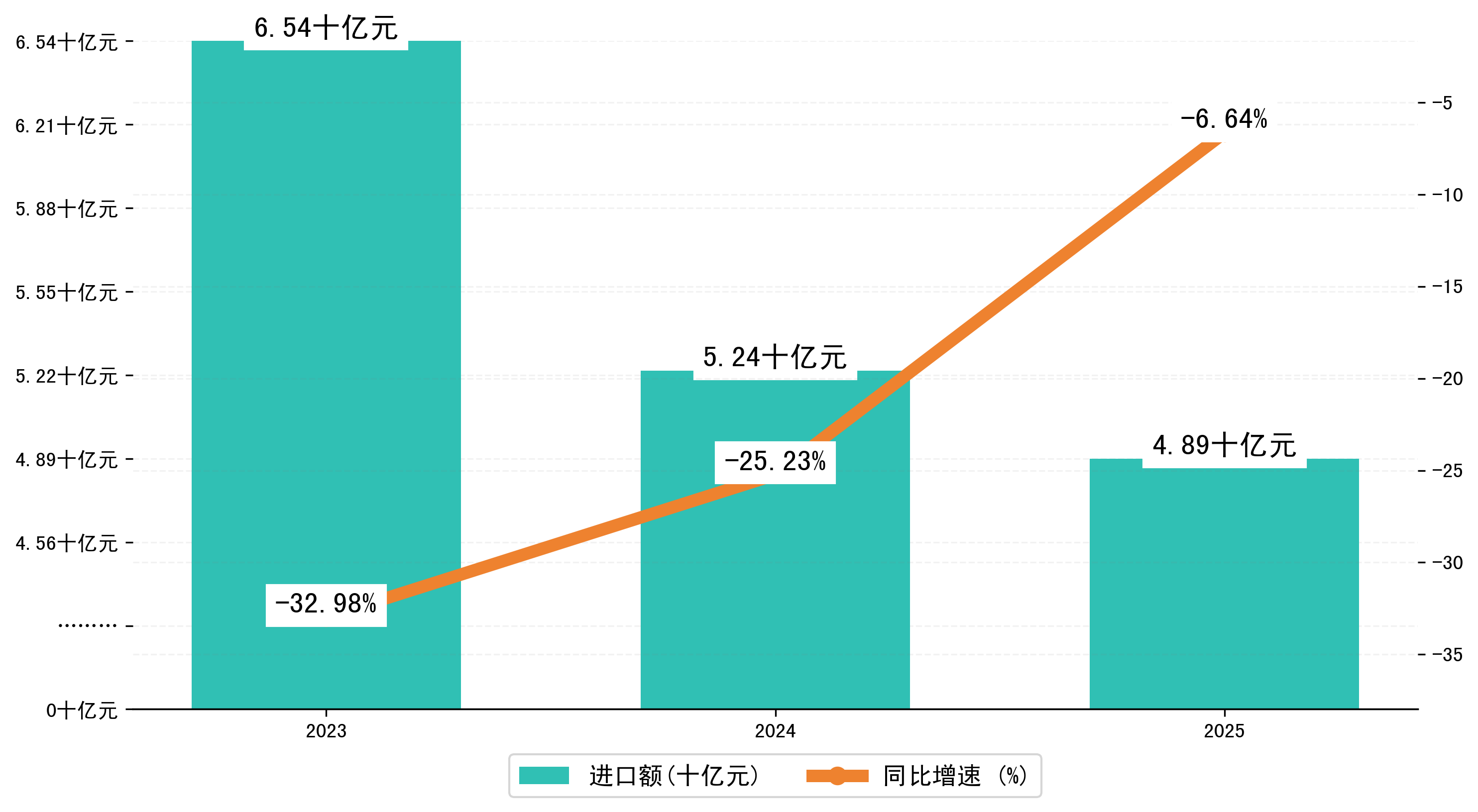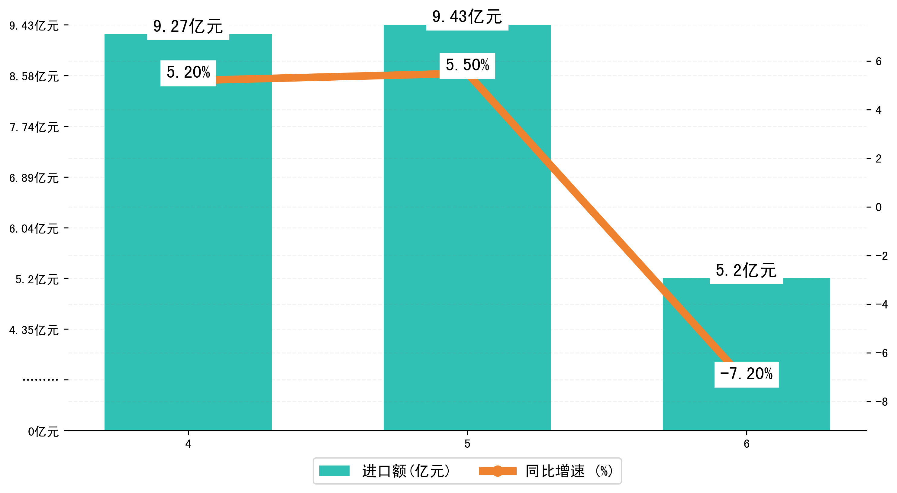 以人民币计,2025年1-6月汕头市进口额为48,8822.5068万元,相比上年同期减少了3,4781.9358万元,同比减少了-7.20%。