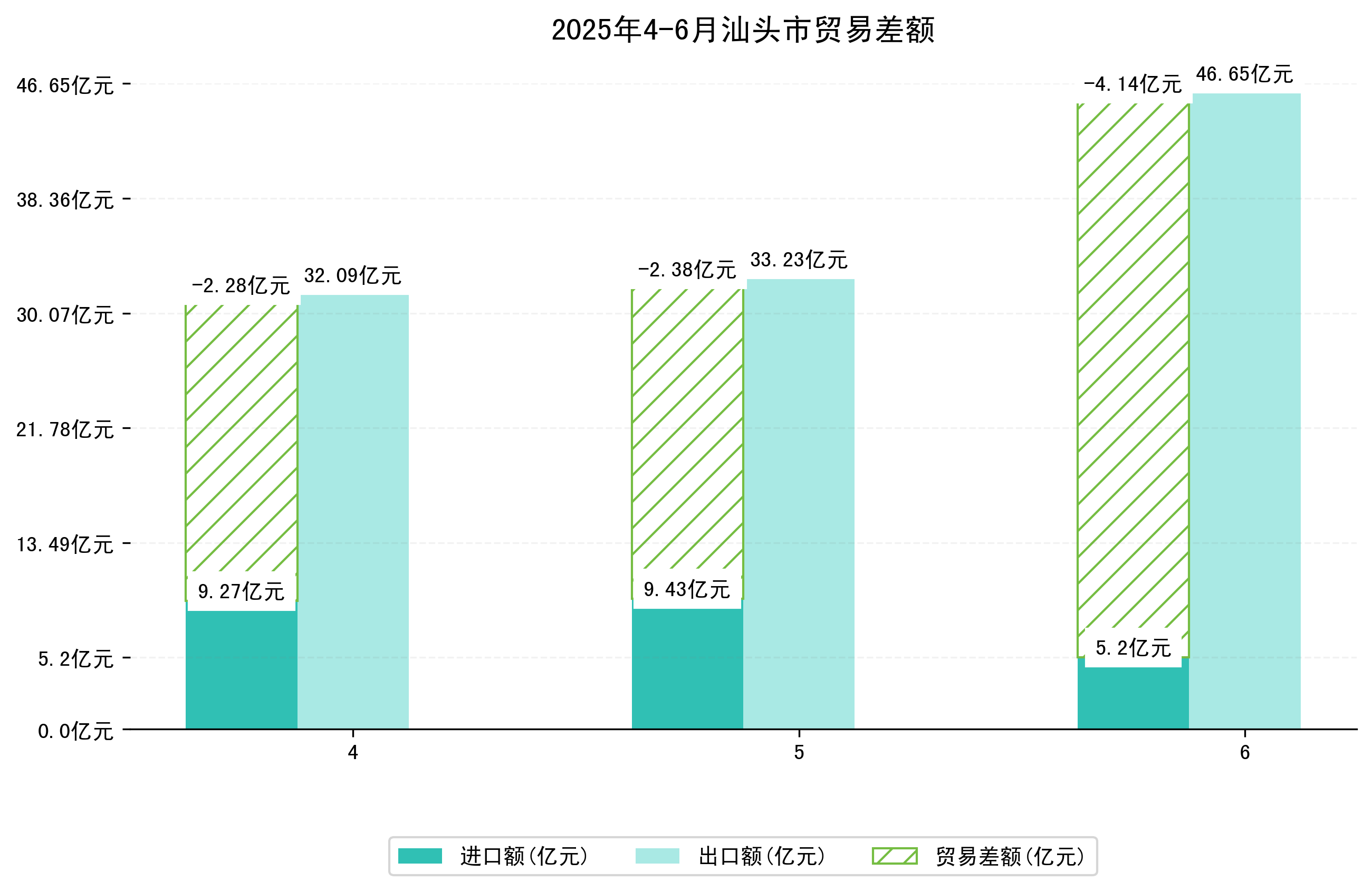 2025年6月汕头市进出口总额及进出口差额统计分析