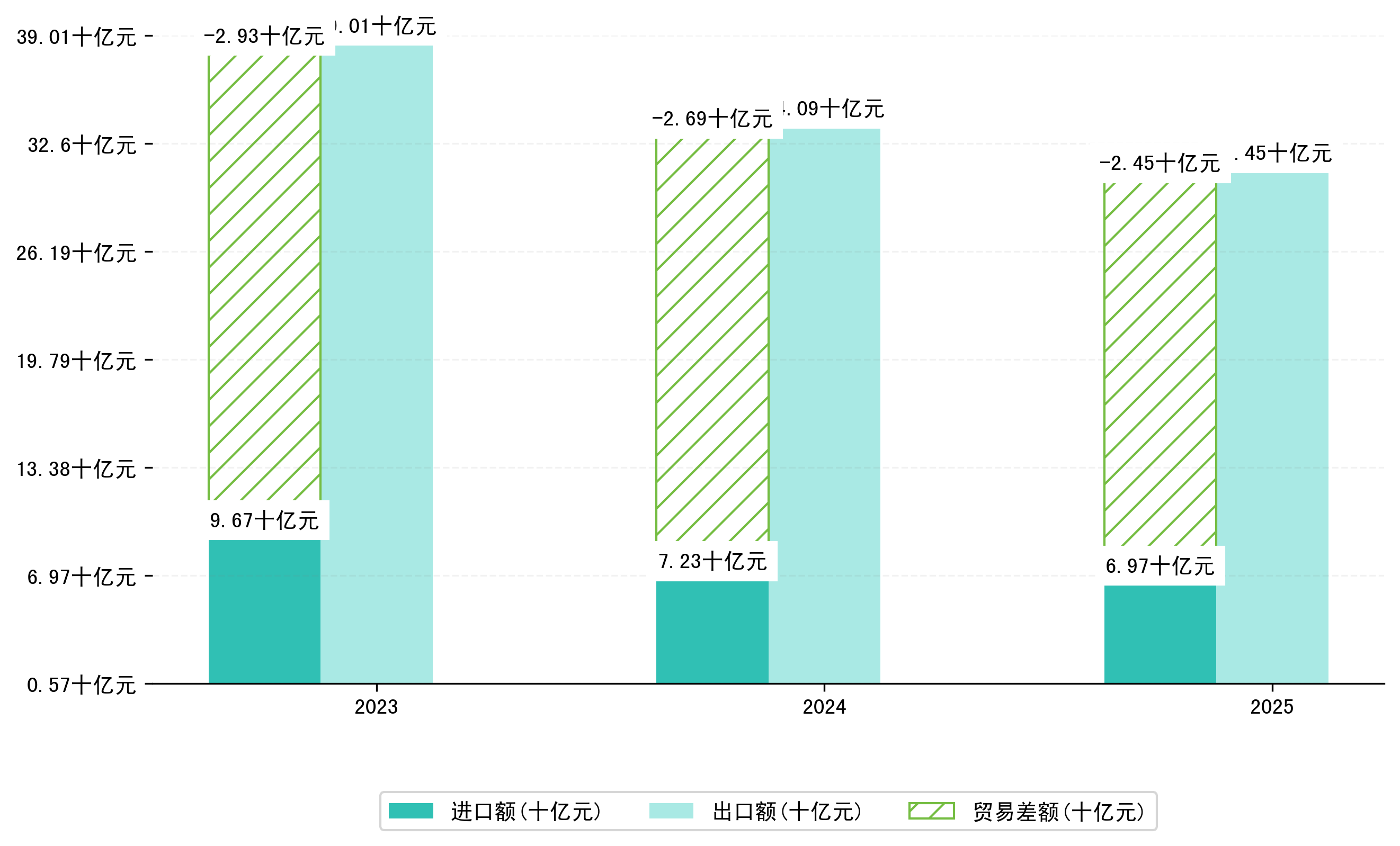 以美元计,2025年1-9月汕头市贸易差额为34,1115,5613万美元(贸易顺差),相比上年同期减少了3,6583,5606万美元,同比减少-9.69%。