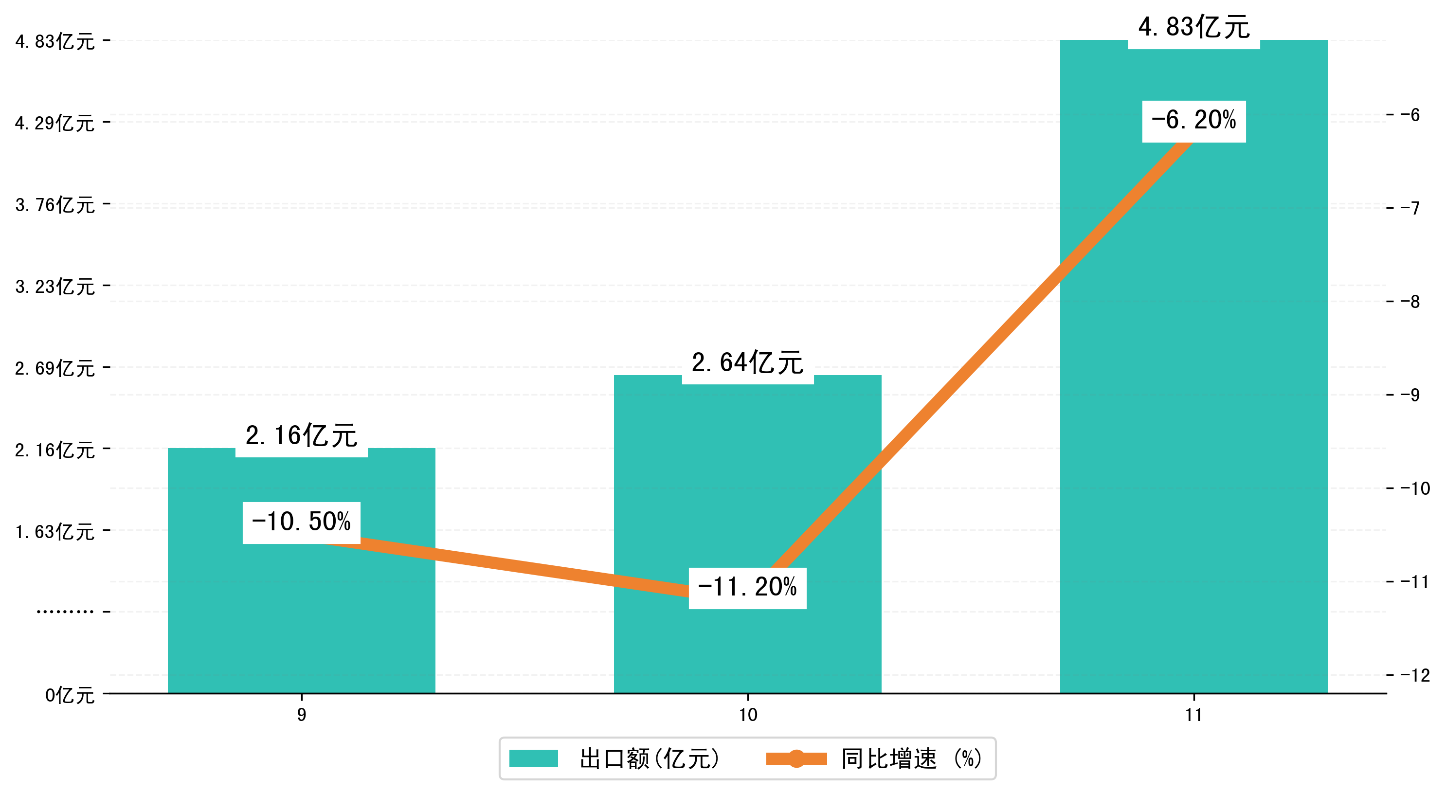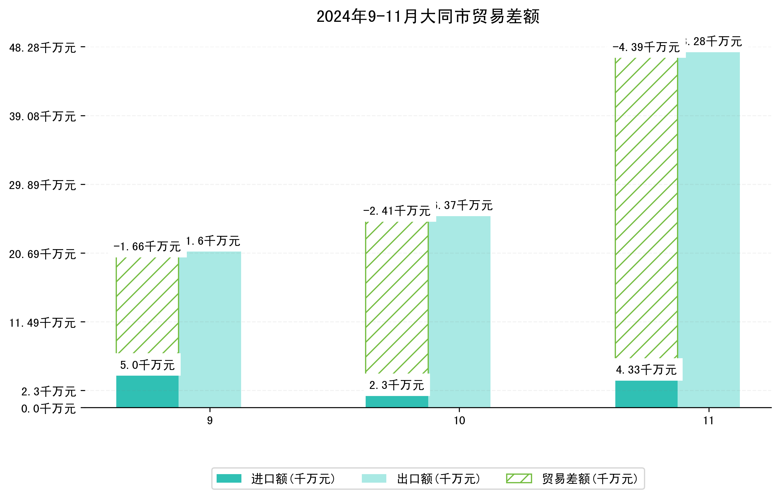 一、2024年11月大同市单月出口总额及进出口差额统计分析
