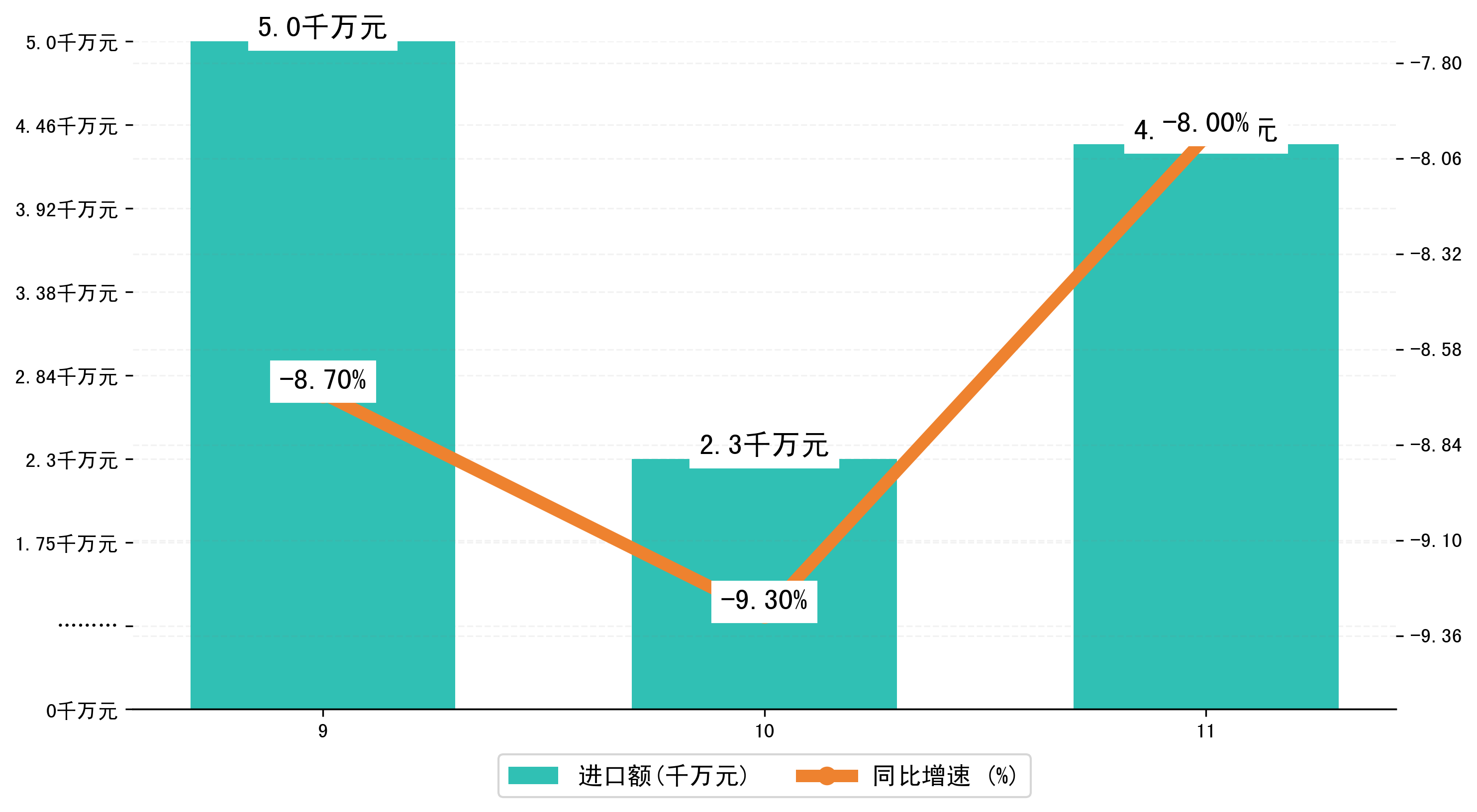以人民币计,2024年11月大同市进口额为4332.4426万元,相比上月增加了2036.8155万元;相比上年同期增加了128.8225万元,同比减少了-8.00%。