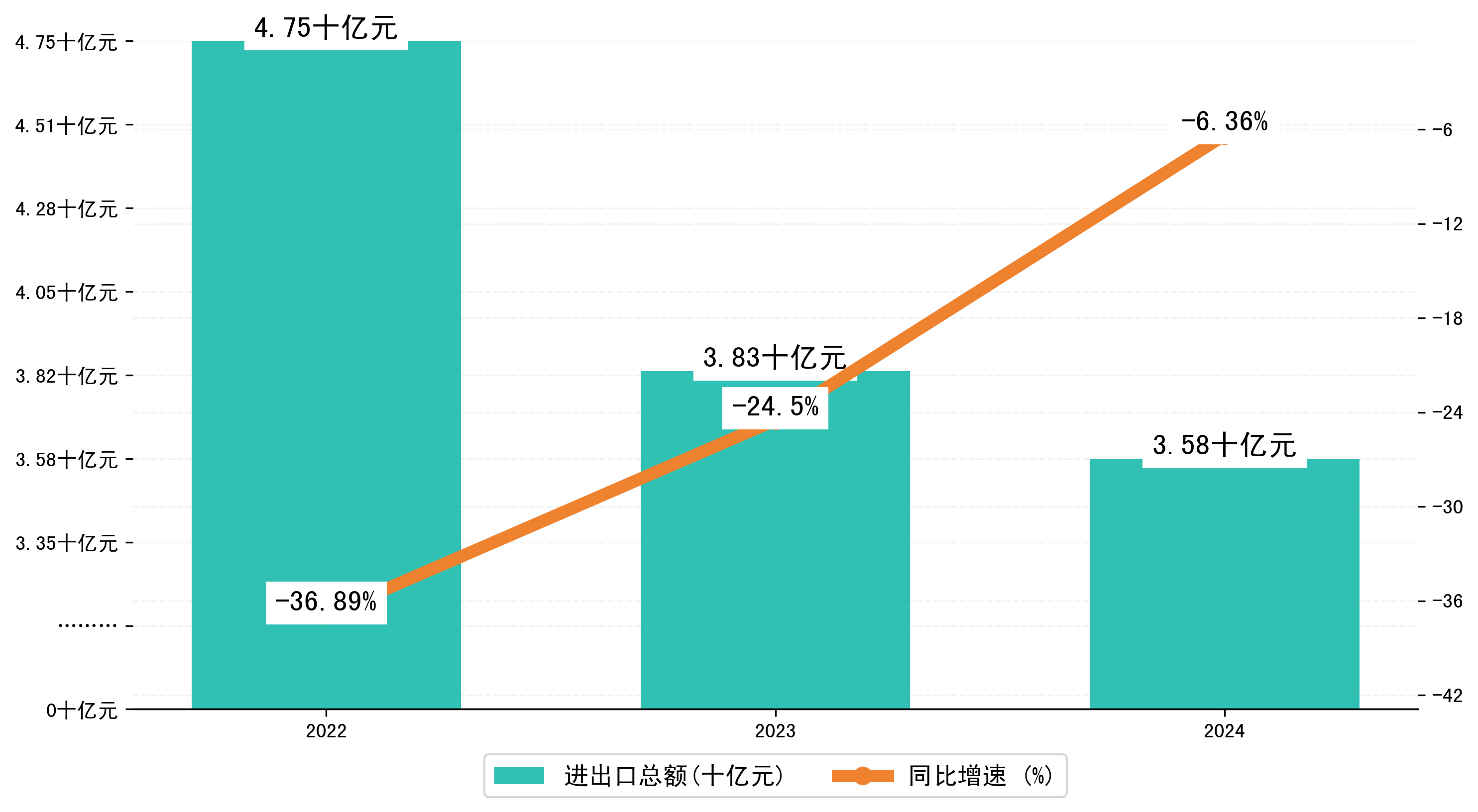 以美元计,2024年1-11月大同市进出口总额为5,0393.8762万美元,相比上年同期减少了4211.2838万美元,同比减少-7.70%。