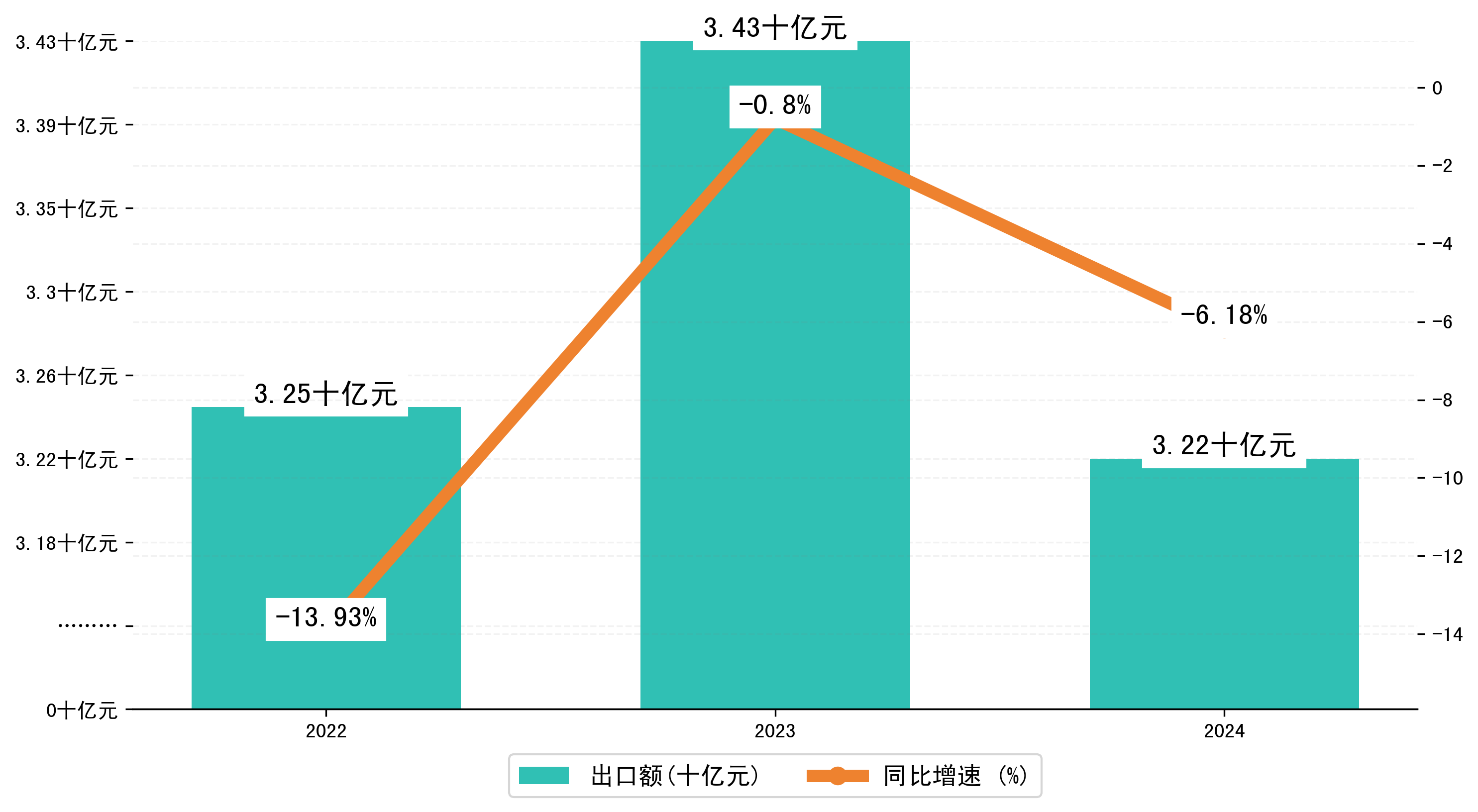 以人民币计,2024年1-11月大同市出口额为32,2003.3903万元,相比上年同期减少了2,1202.0683万元,同比减少了-6.20%。
