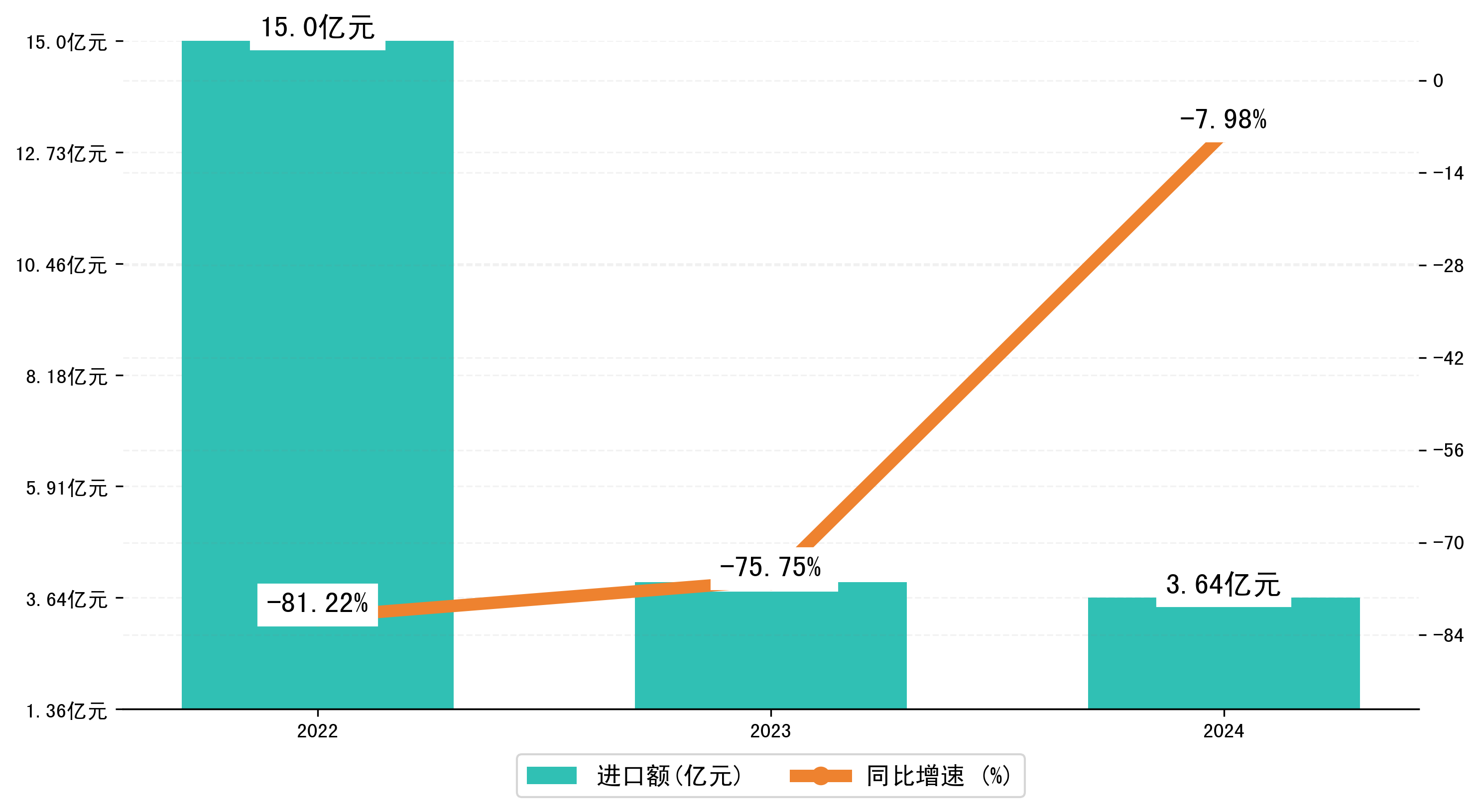 以人民币计,2024年1-11月大同市进口额为3,6381.828万元,相比上年同期减少了3154.0913万元,同比减少了-8.00%。