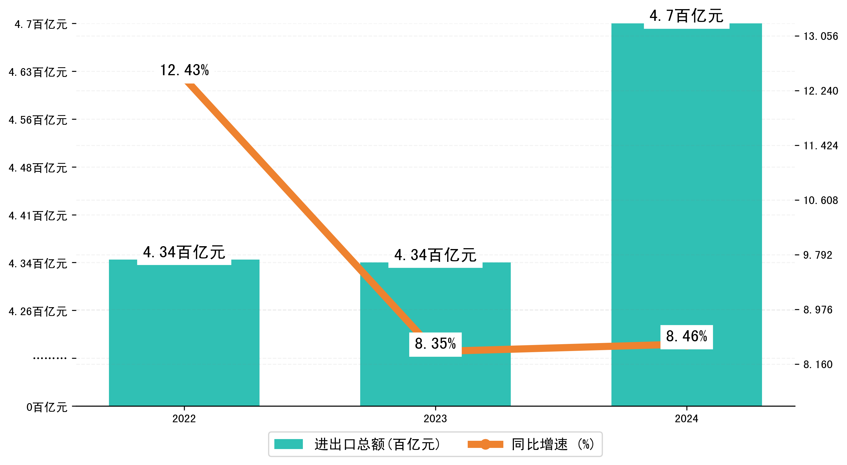 以人民币计,2024年1-4月沈阳市进出口总额为470,4446.3653万元,相比上年同期增加了36,7007.5117万元,同比增加了9.70%。