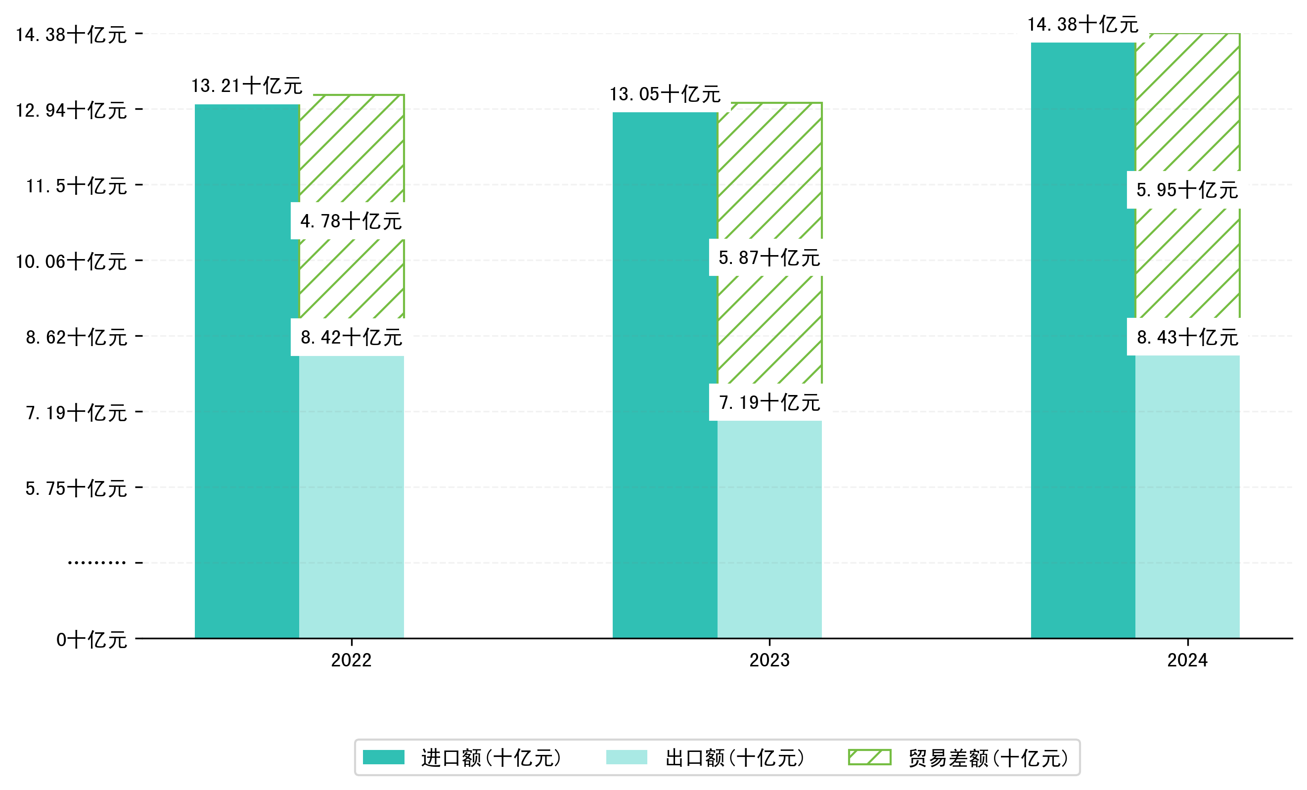 以人民币计,2024年1-2月沈阳市贸易差额为59,4835,6581万元(贸易逆差),相比上年同期减少了8313,2594万元,同比减少1.42%。