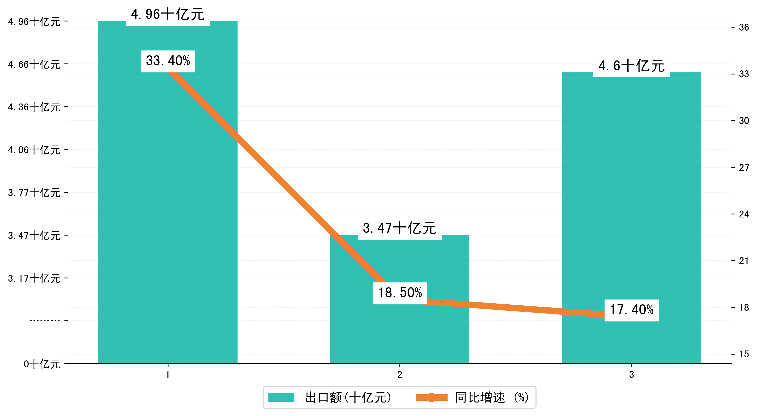 以美元计,2024年1-3月沈阳市出口额为18,3534.3024万美元,相比上年同期增加了1,8667.7778万美元,同比增加13.80%。