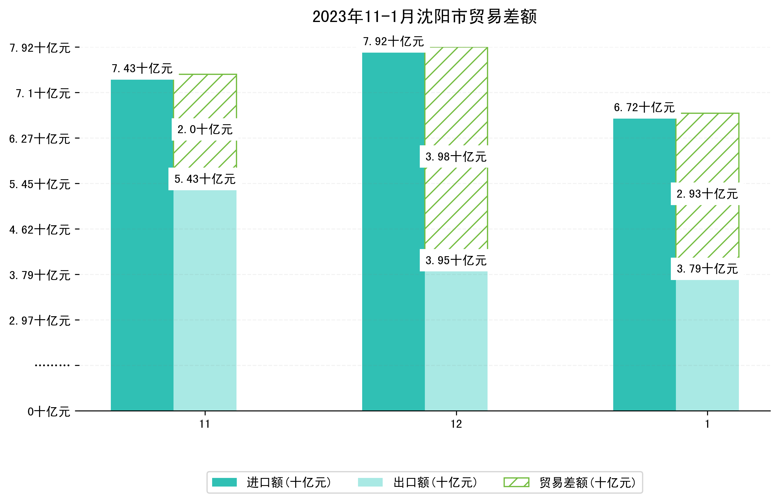 (图四:2023年11-1月沈阳市贸易差额)