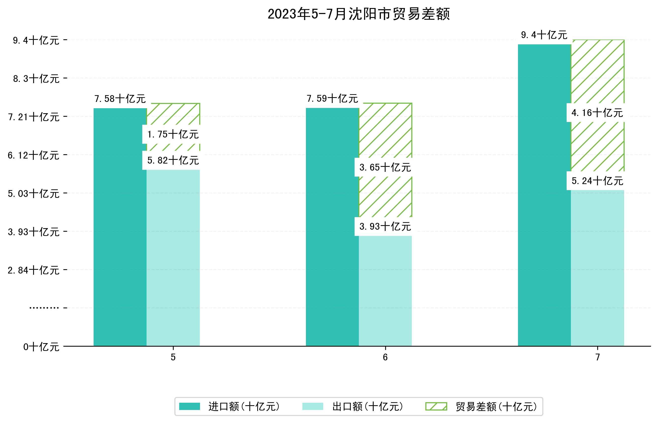 2023年7月沈阳市进出口总额及进出口差额统计分析