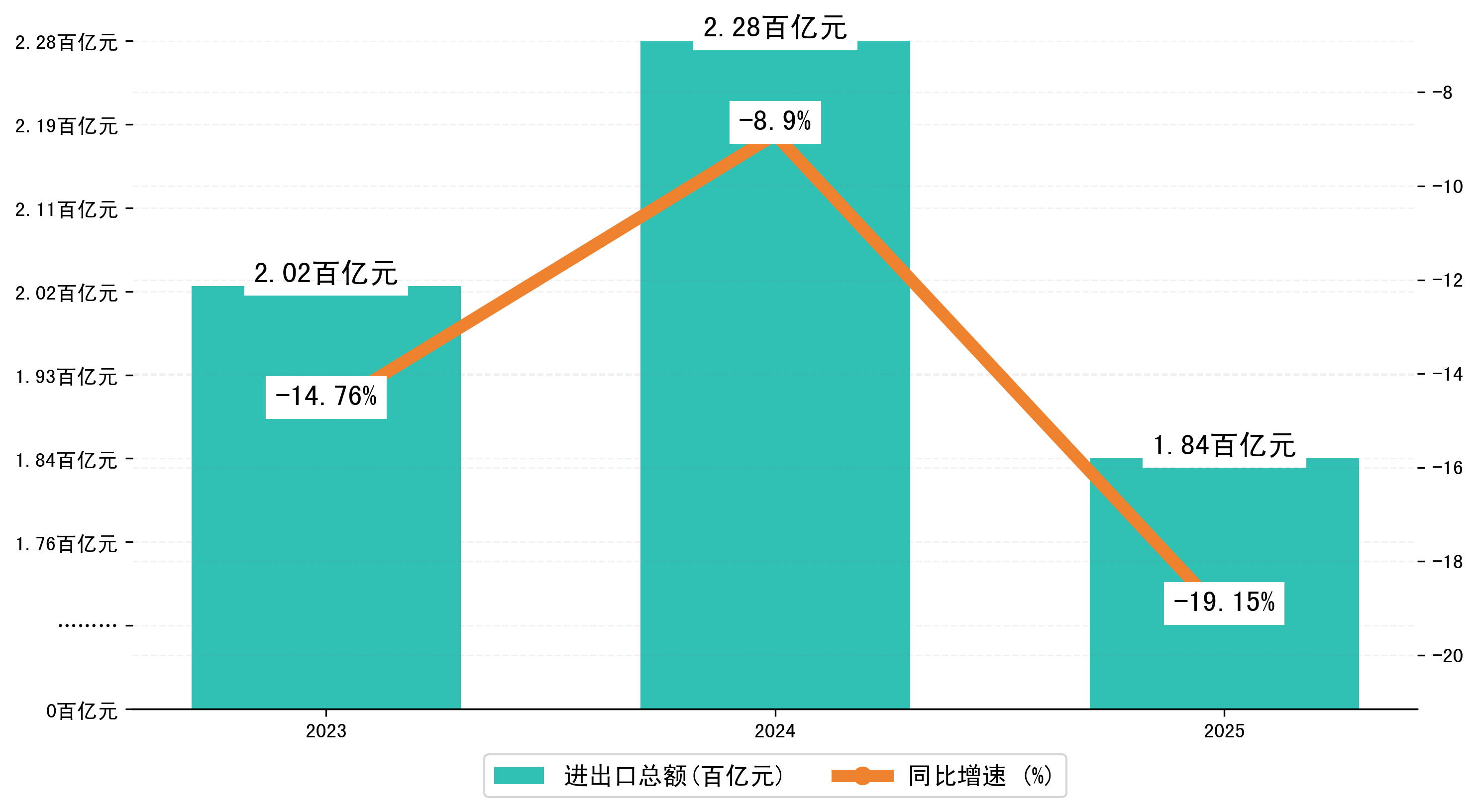 以美元计,2025年1-2月沈阳市贸易差额为1,9960,6397万美元(贸易顺差),相比上年同期增加了10,4382,8435万美元,同比增加-123.64%。